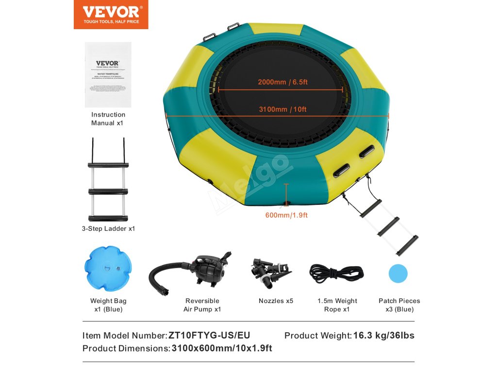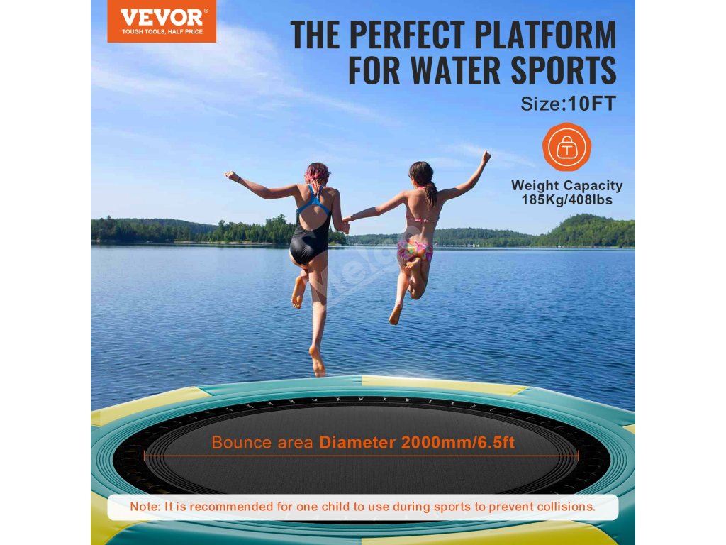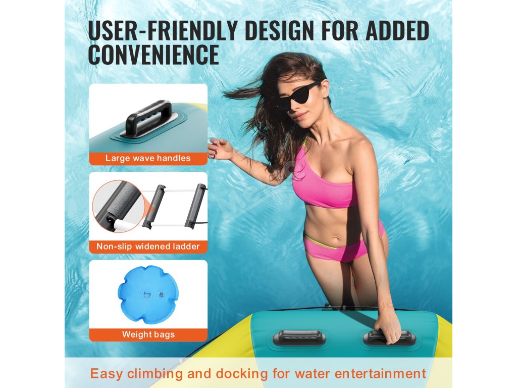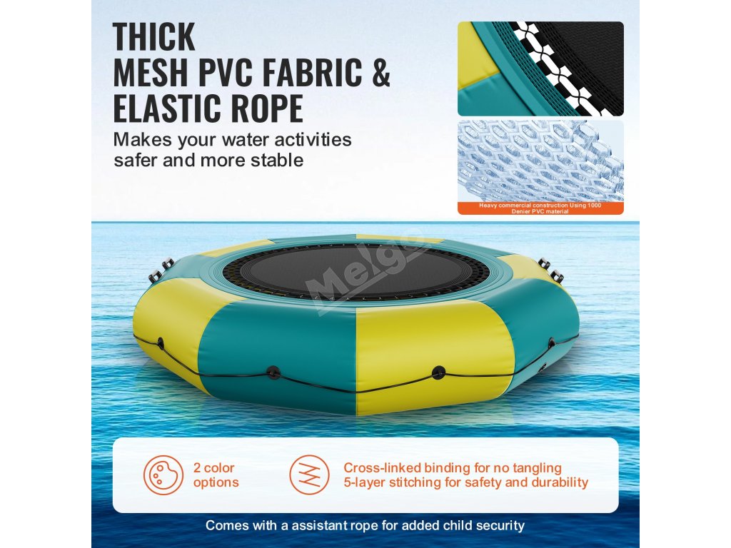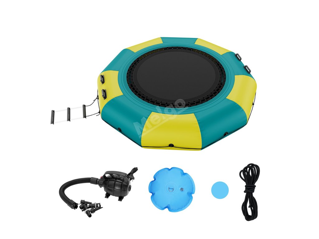 Je vybaven 600wattovou pumpou s čistě měděným motorem, která zajišťuje nepřetržitý proces nafukování. Montáž a demontáž této plovoucí trampolíny vyžaduje minimum času. Po vyfouknutí se stává kompaktní a lehkou, což usnadňuje její přepravu z jednoho místa na druhé.