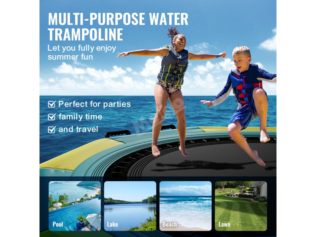 Nafukovací vodní trampolína má široké využití a lze ji použít jako plošinu pro plavání, rybaření nebo opalování. Dávejte jen pozor, abyste se vyhnuli ostrým předmětům.