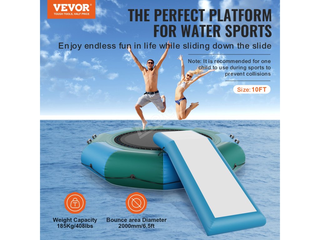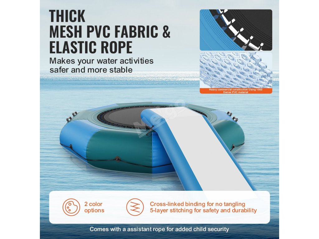 Dodává se v modré a teal barvě, stylové a zářivé, takže si můžete vybrat podle svých preferencí. Kombinace vodní trampolíny a skluzavky dodá vašemu vodnímu parku ještě více zábavy.