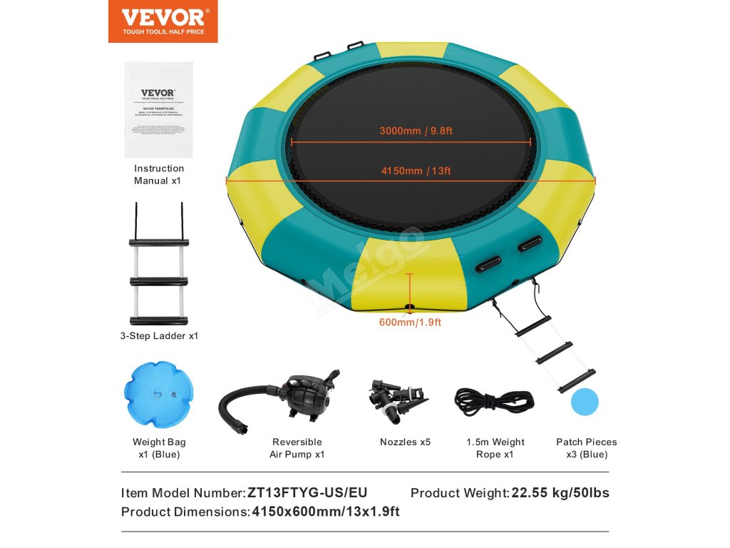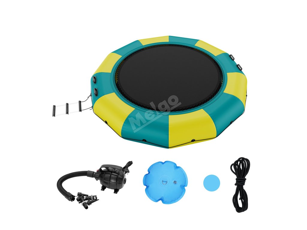 Je vybaven 600wattovou pumpou s čistě měděným motorem, která zajišťuje nepřetržitý proces nafukování. Montáž a demontáž této plovoucí trampolíny vyžaduje minimum času. Po vyfouknutí se stává kompaktní a lehkou, což usnadňuje její přepravu z jednoho místa na druhé.