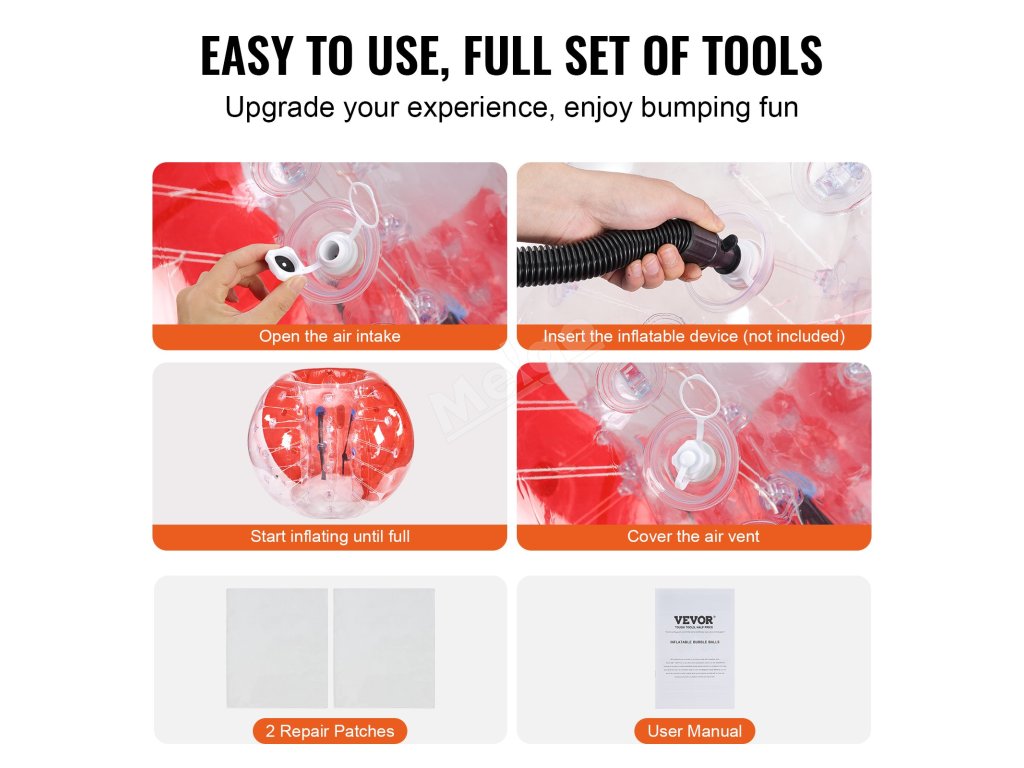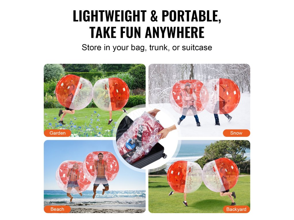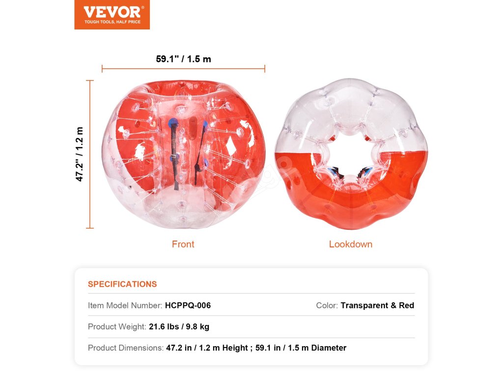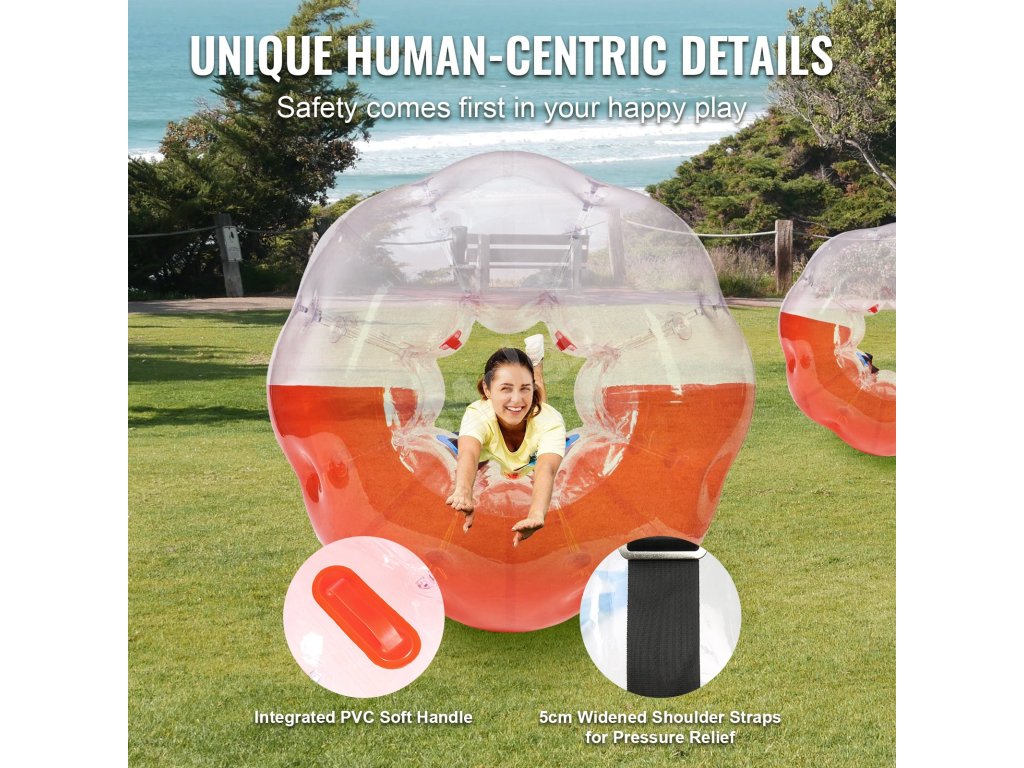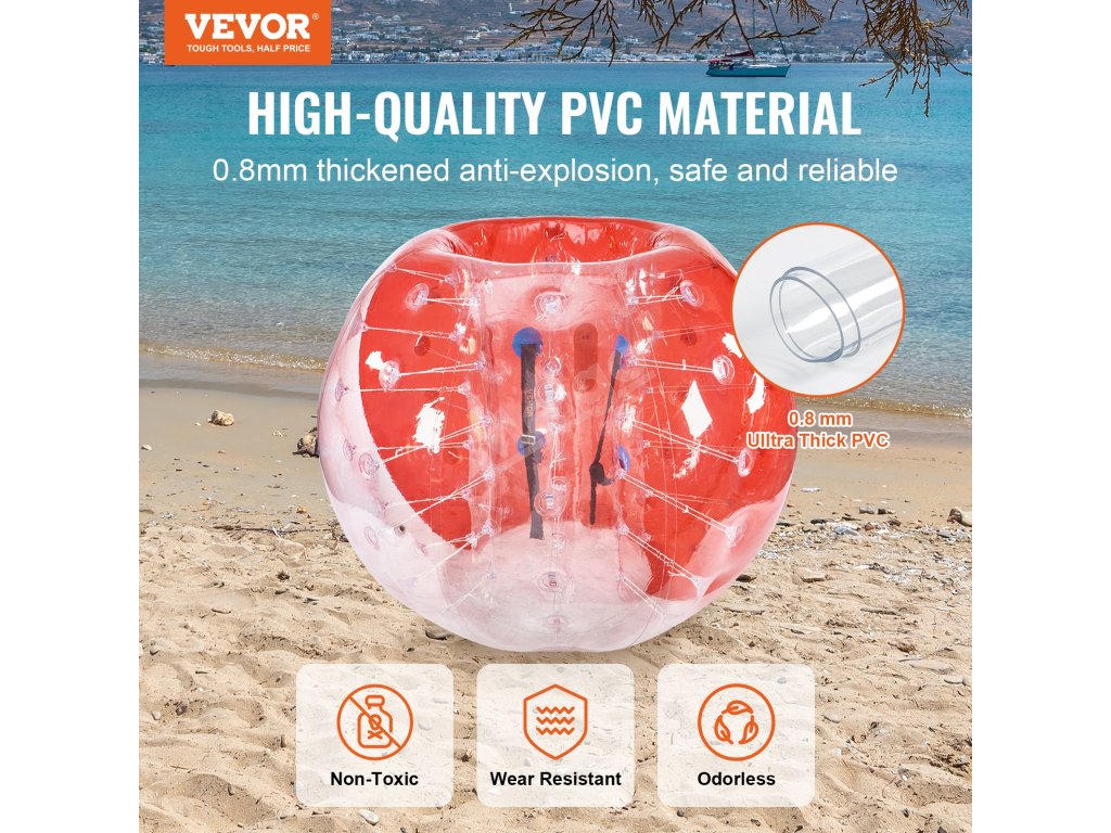 Rozpoutejte dokonalou zábavu s nafukovacími míči VEVOR. Naše nárazníkové míče o vnějším průměru 5 stop jsou vyrobeny z 0,8 mm silného PVC odolného proti výbuchu a jsou navrženy pro maximální odolnost a bezpečnost. Připravte se na nárazové vzrušení a vytvořte nezapomenutelné okamžiky s bublinkovými míči VEVOR!