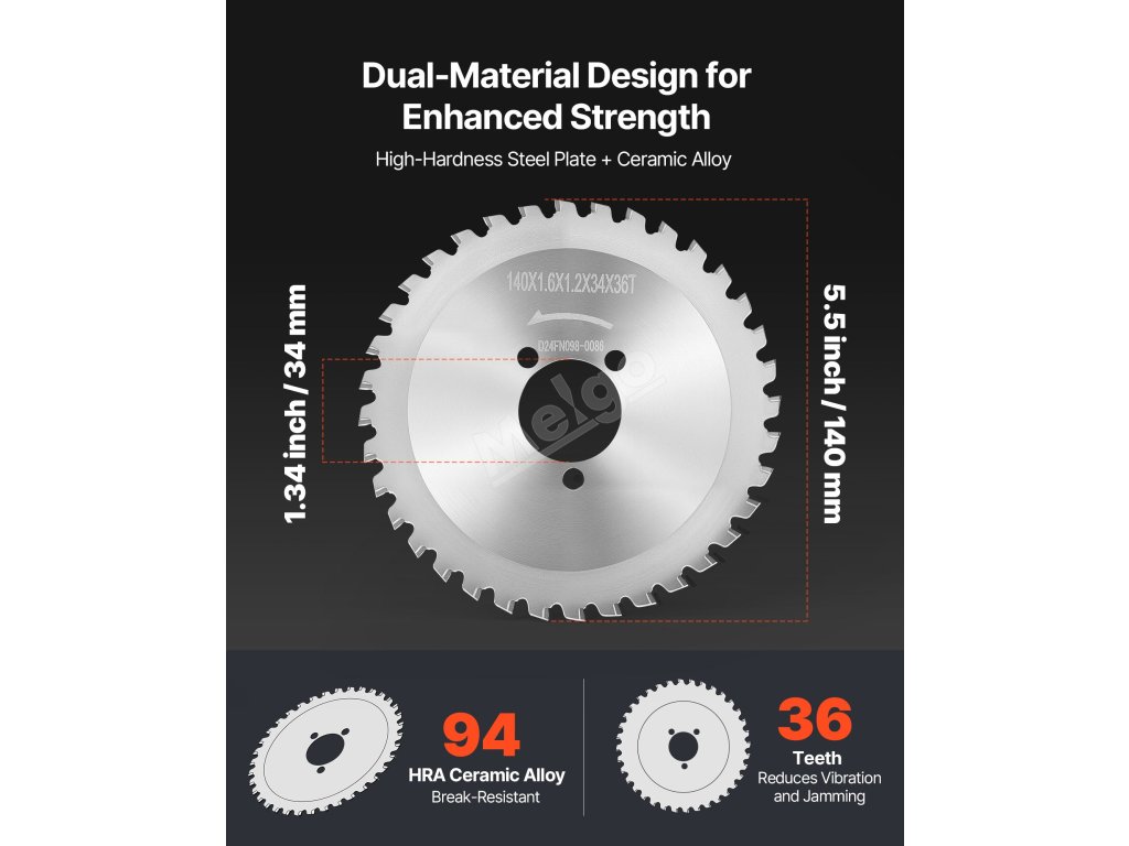 Náhradní kotouč pro elektrickou pilu VEVOR RD-10 na řezání výztuže. Vysokopevnostní ocel SK51 s mimořádně tvrdými hroty z keramické slitiny zajišťuje ostřejší a trvanlivější řezy. konstrukce s 36 zuby snižuje vibrace a zasekávání pro rychlejší a plynulejší řezání. Ideální pro různé aplikace na staveništi.