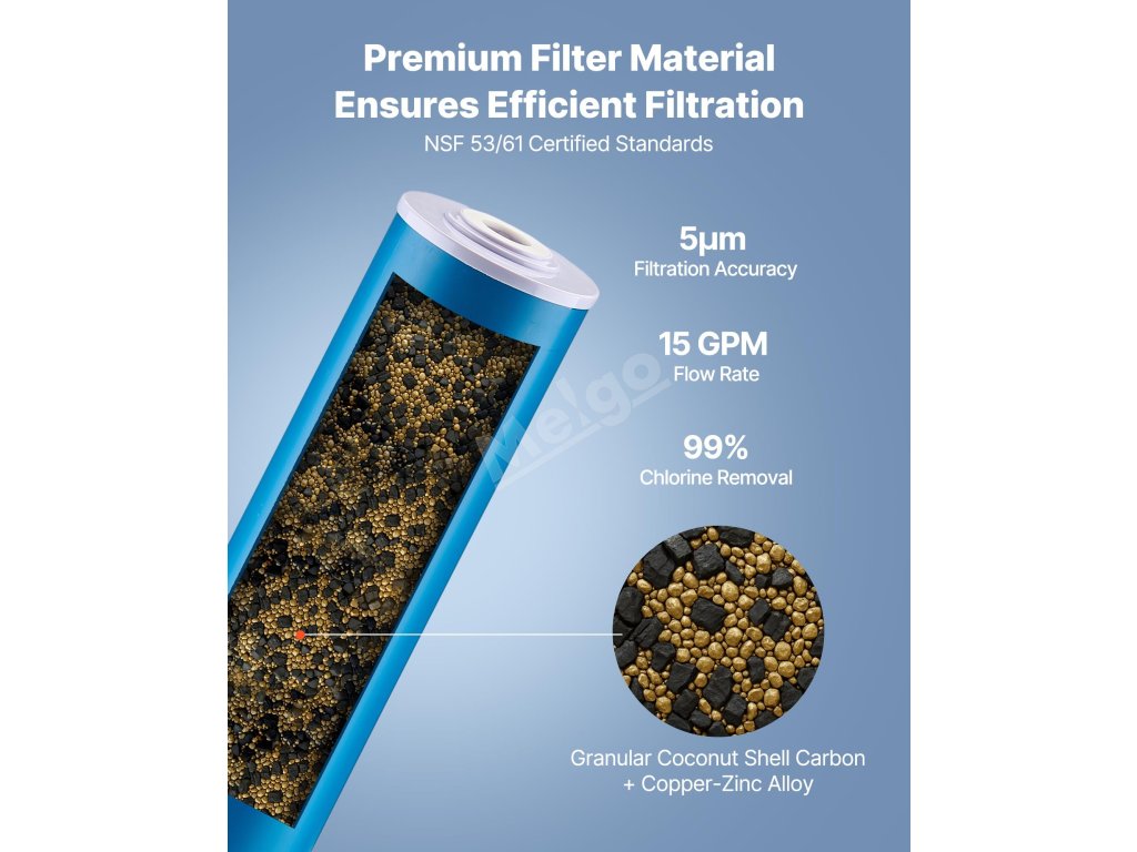 Tato náhradní filtrační vložka pro celou domácnost je vhodná pro různé způsoby použití vody v domácnosti, včetně kuchyní, koupelen, chladniček a prádelen, a splňuje všechny vaše požadavky na filtraci vody.