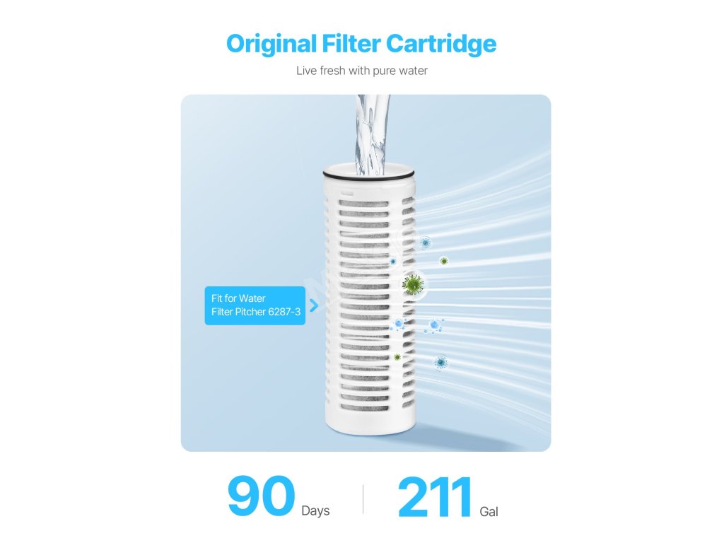 Vychutnejte si čistou a čerstvou vodu s našimi náhradními filtry pro filtrační konvice. Snižují obsah těžkých kovů, chlóru a zápachu a zároveň zachovávají důležité minerály. S kapacitou 211 galonů vám každý filtr ušetří 1 600 lahví a sníží množství plastového odpadu pro ekologičtější budoucnost.
