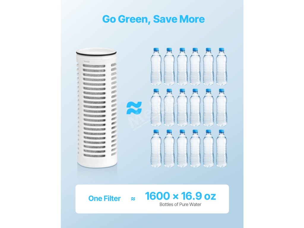 Každý filtr na pitnou vodu vyčistí 211 galonů vody a vydrží až 3 měsíce. Šetří vaše peníze a zároveň snižuje množství plastového odpadu pro ekologičtější planetu.