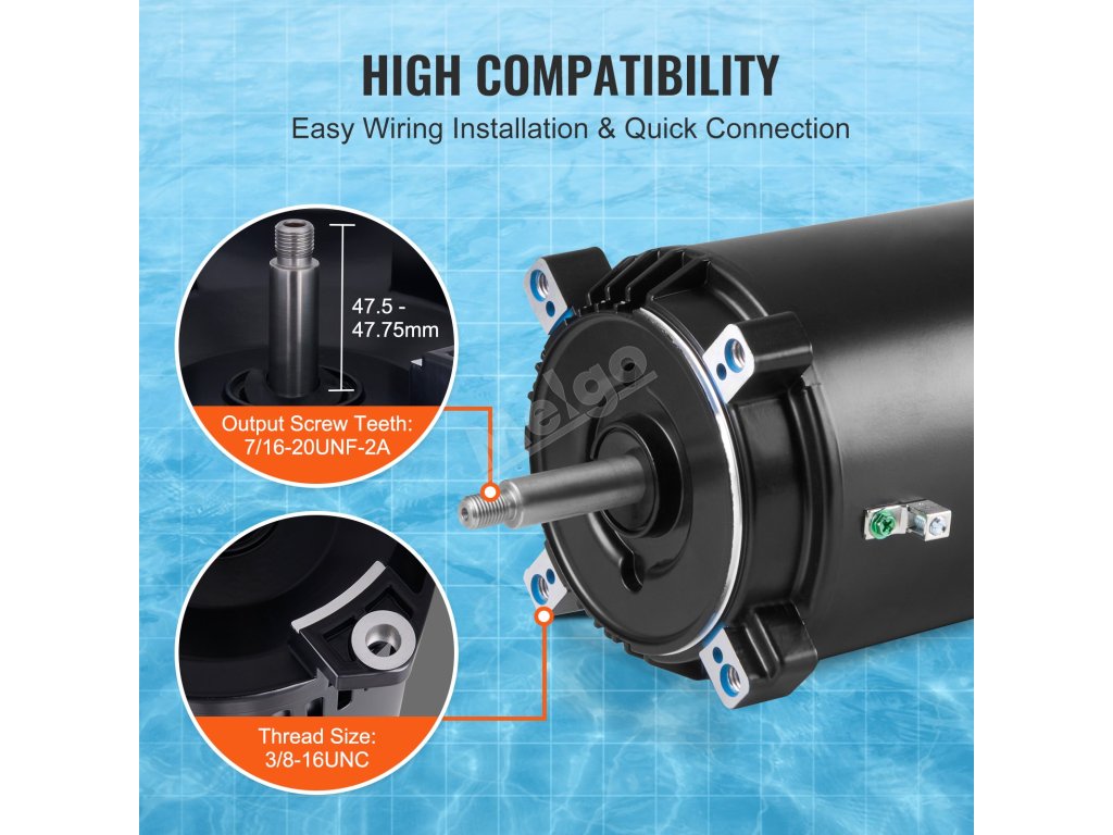 Náš motor bazénového čerpadla je pečlivě navržen tak, aby zajistil bezproblémovou instalaci - od velikosti závitu až po zuby výstupního šroubu. Zjednodušené instalační kroky vám umožní rychle a snadno oživit váš bazénový systém a zajistit bezproblémový provoz.