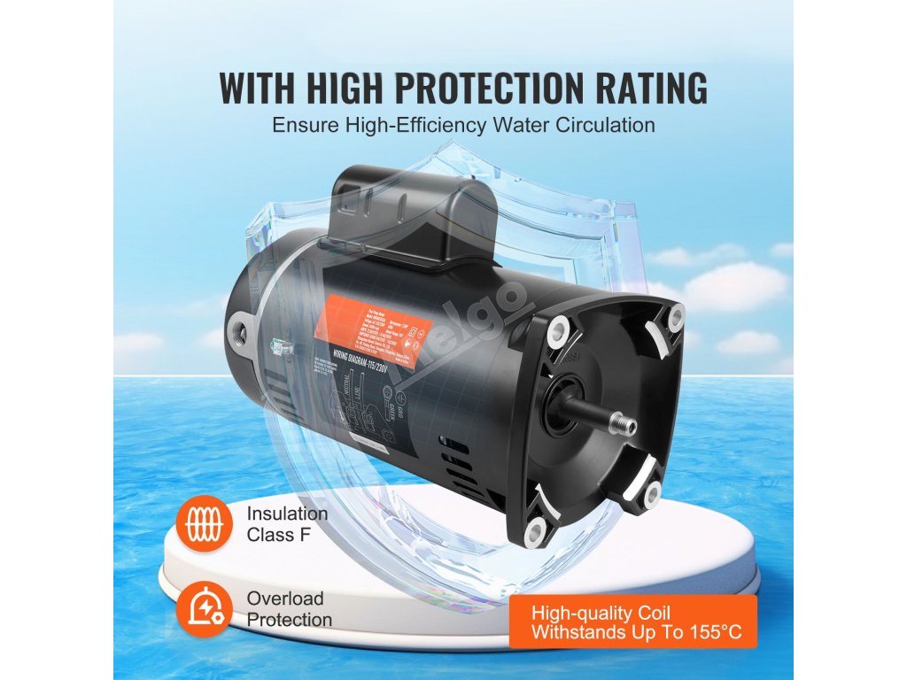 Náš motor čerpadla poskytuje vynikající výkon s vysokou rychlostí 3450 otáček za minutu, což zajišťuje vysoce účinnou cirkulaci vody a zároveň minimalizuje spotřebu energie. Zajišťuje hladký a efektivní provoz vašeho bazénového systému a poskytuje osvěžující zážitek z koupání.