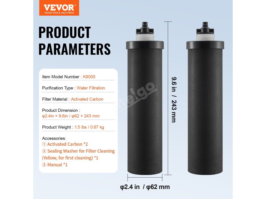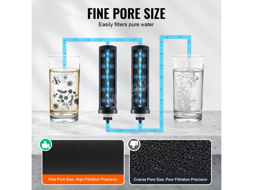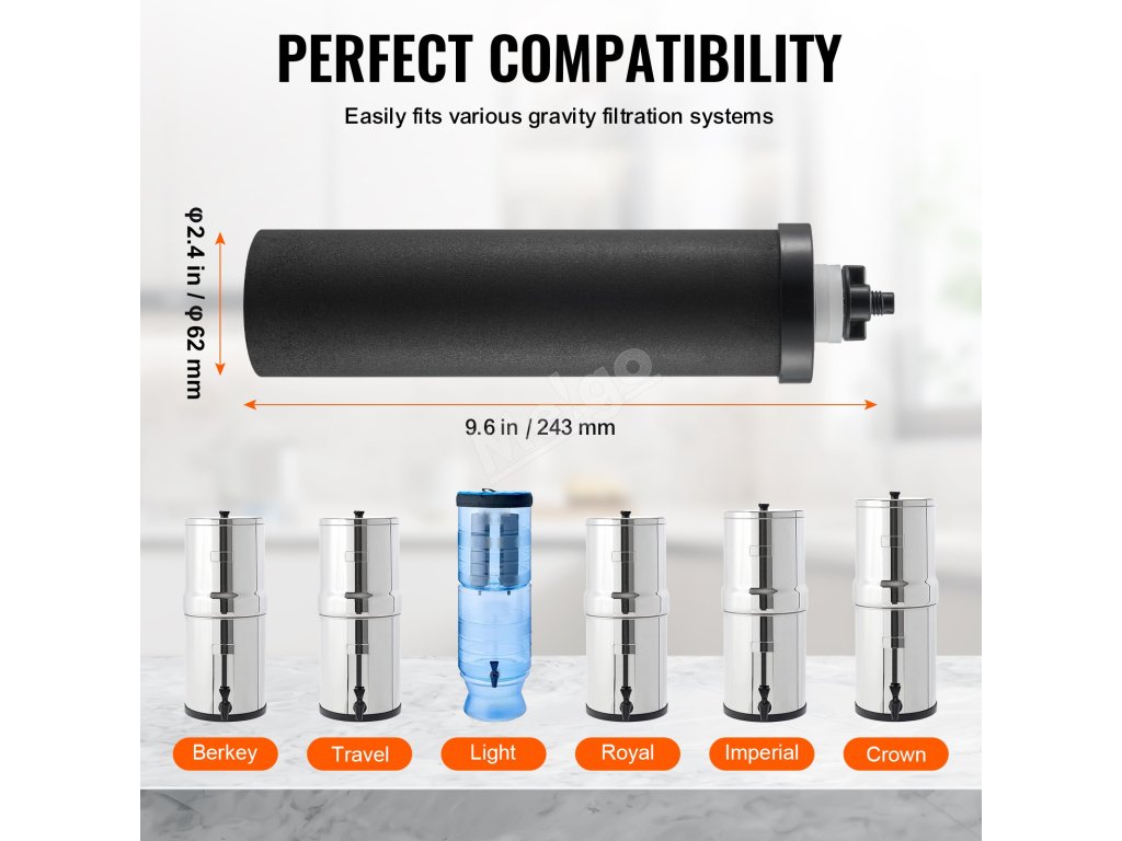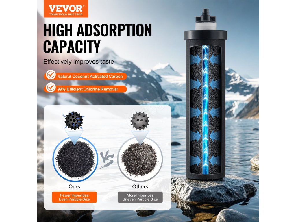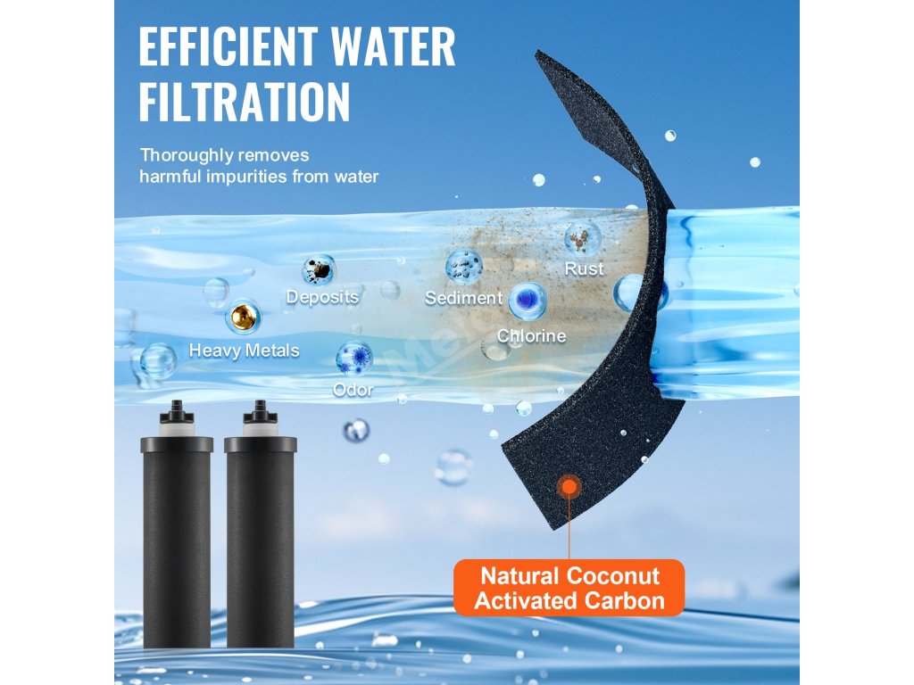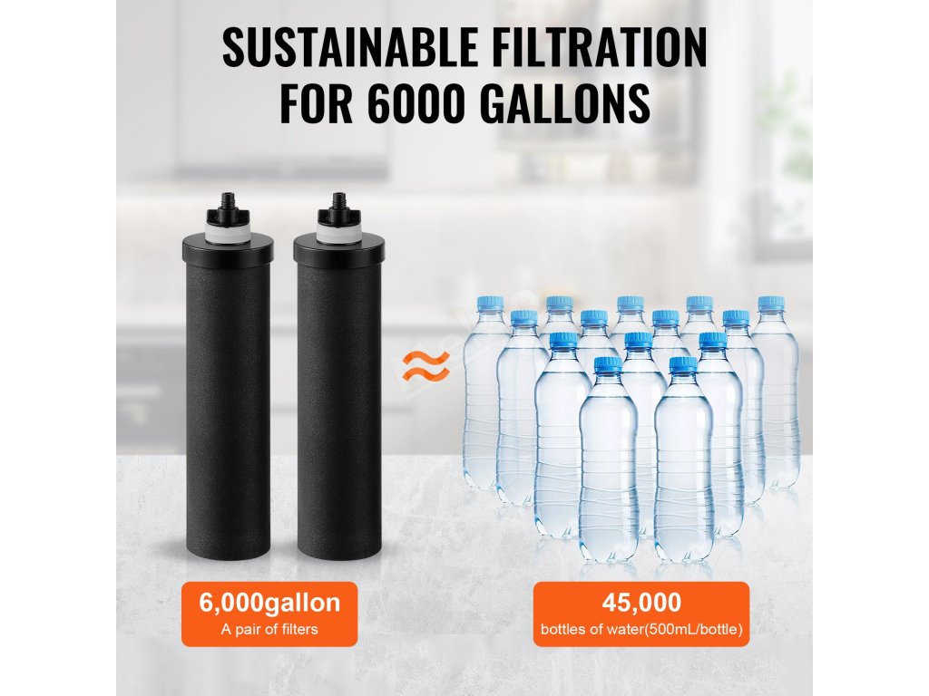 Naše náhradné filtre sú dokonale kompatibilné s väčšinou gravitačných systémov filtrácie vody na trhu, čím spĺňajú vaše udržateľné potreby pitnej vody. Každý pár filtrov dokáže nepretržite čistiť až 6000 galónov vody, čím účinne znižuje náklady na pitnú vodu.
