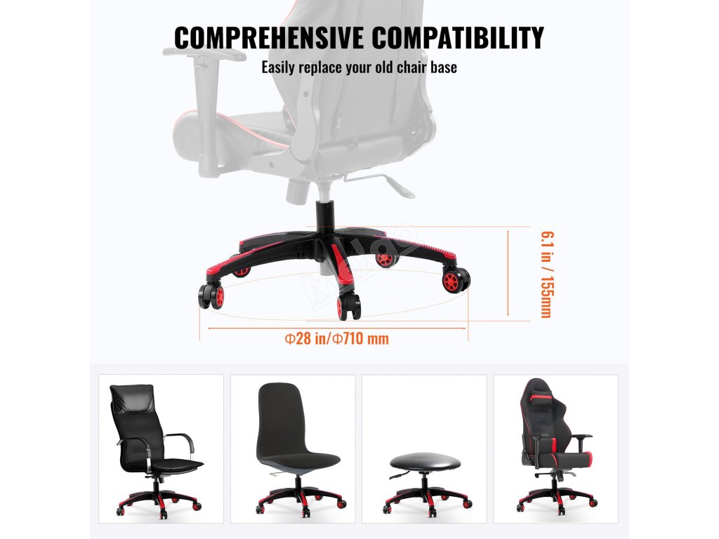 Náhradní základna židle 28", 2500 lbs, 5 koleček, černo-červená