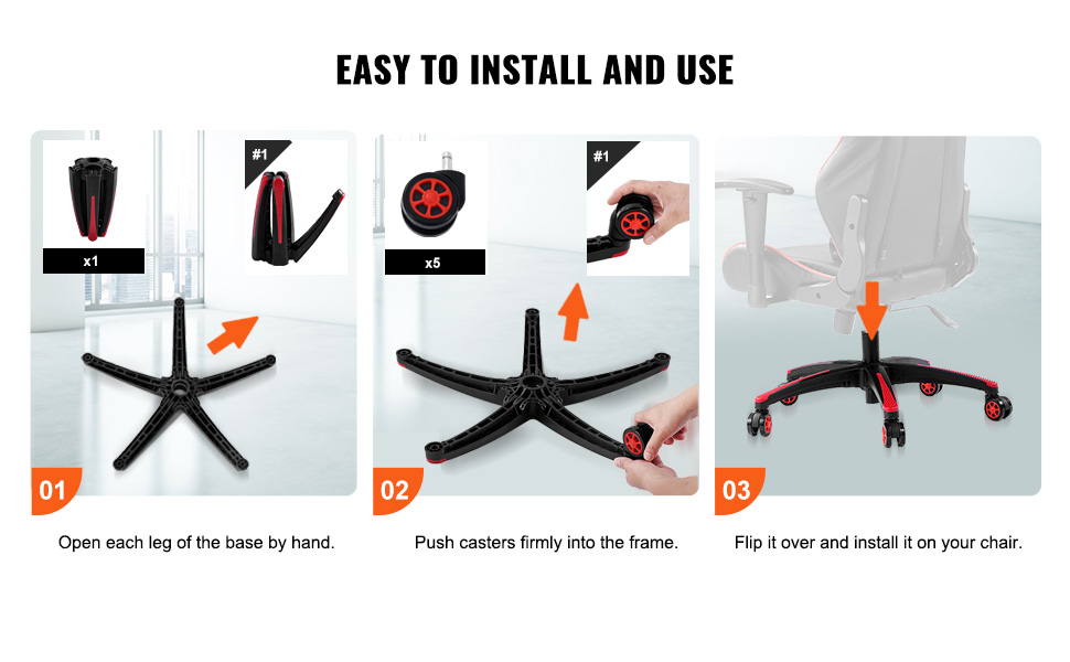S naší základnou židle je modernizace židle hračka. Dodává se se vším, co potřebujete pro bezproblémovou instalaci, a navíc s jasnými pokyny, takže ji můžete rychle nastavit. Rozlučte se se složitou montáží a přivítejte osvěženou židli!