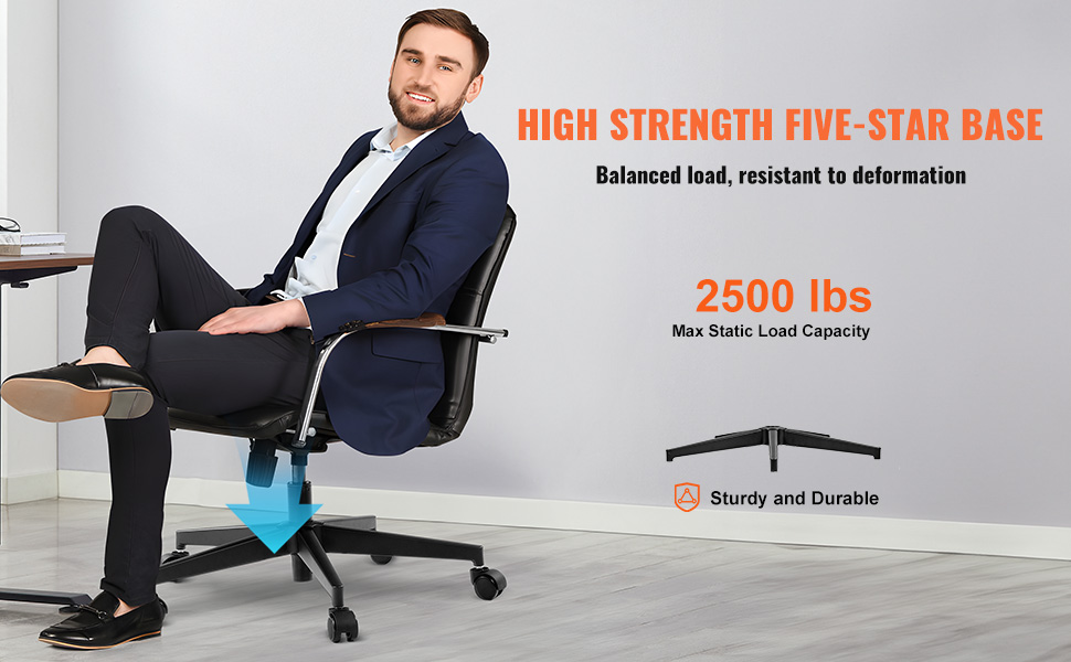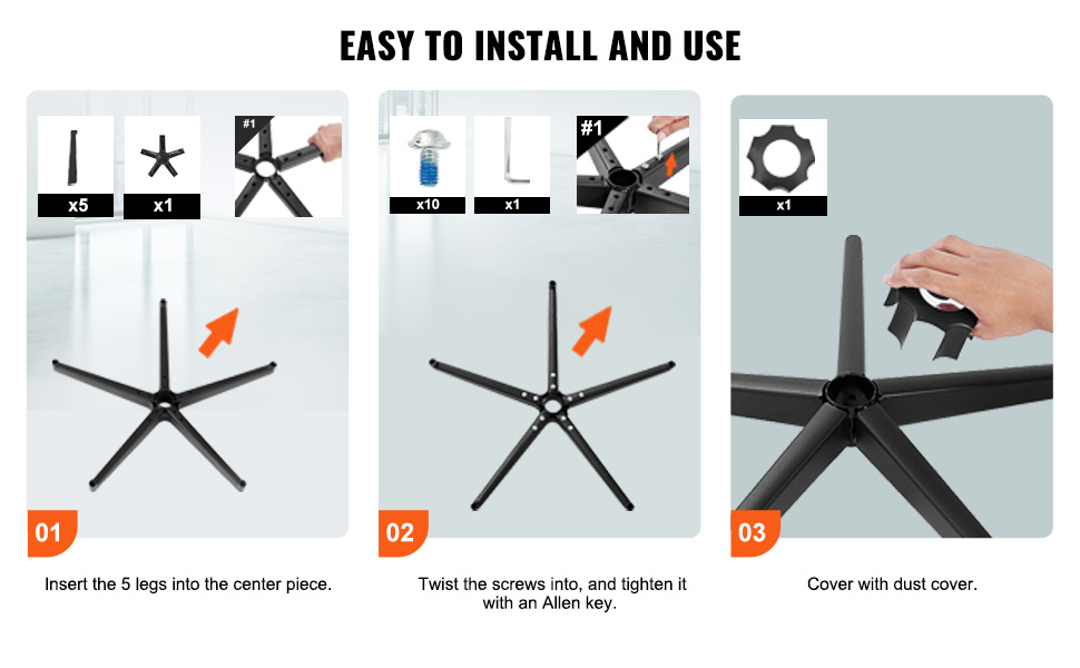 Náš podstavec kancelářské židle s pěticípou hvězdou je vyroben z vysoce kvalitních materiálů, které nepraskají ani se nelámou. Základna o šířce 28 palců vám poskytne mimořádnou stabilitu, protože unese až 2 500 kg při stání a 300 kg při pohybu. To znamená, že vaše židle vydrží déle a zůstane bezpečná pro každodenní používání.