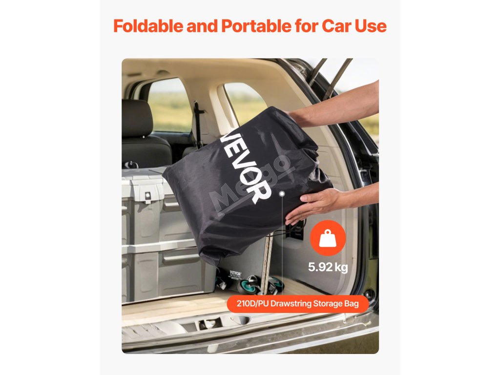 do priestoru s objemom 26 cm3 sa zmestí batožina, stany, kočíky a ďalšie veci. Vodotesná vrstva a utesnené zipsy udržia predmety v suchu v daždi alebo snehu. Dodáva sa so 4φ7 mm bungee šnúrami s háčikmi na bezpečné pripevnenie. Skladá sa na jednoduché uskladnenie. Prispôsobený dizajn vám nebude brániť vo výhľade, čo zabezpečí bezproblémové dochádzanie a cestovanie.