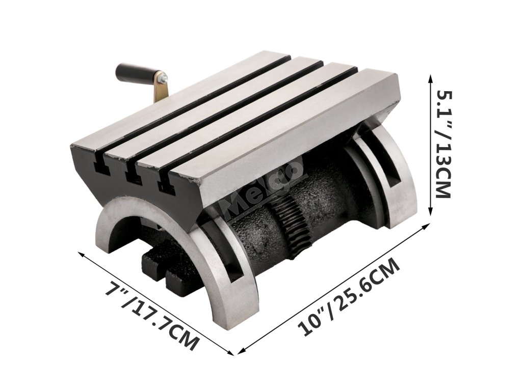 Otočný stůl pro frézku je dodáván s klikou, úhel lze nastavit podle potřeby. Rozsah od 0 do 80°.