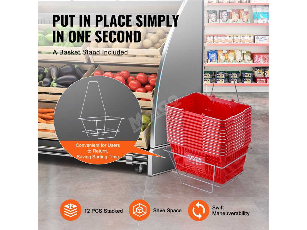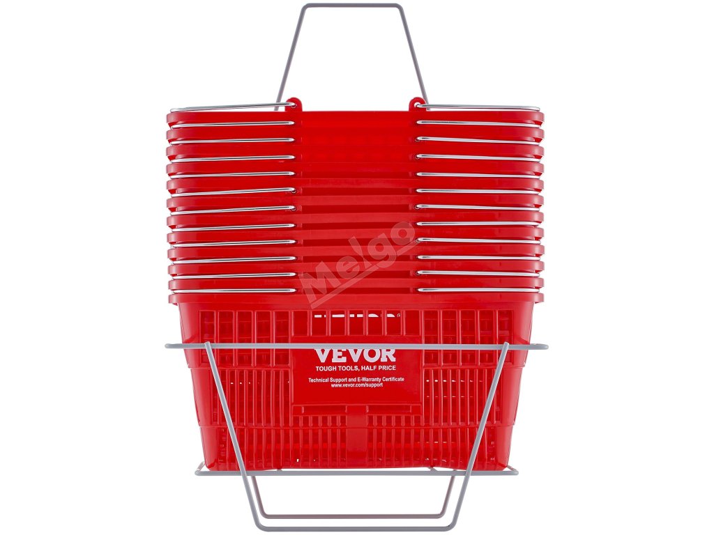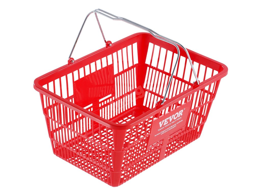 Nákupní košík sada 12 ks, 21 l plast s kovovým držadlem, červený