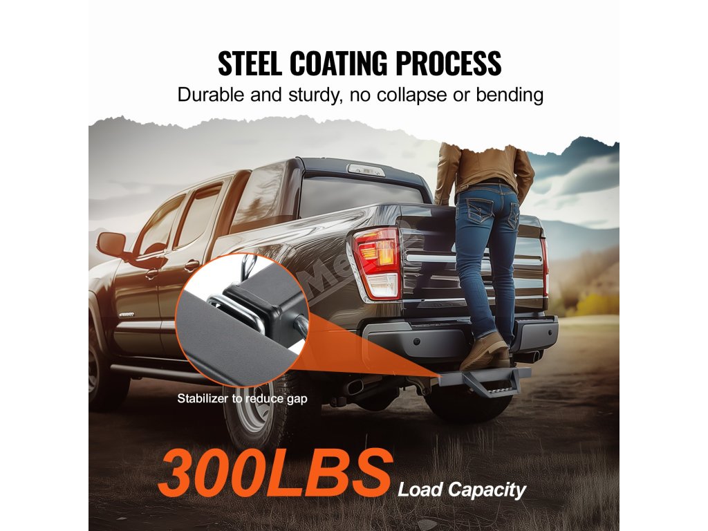 Náš záclonový schůdek slouží jako pevná ochranná bariéra zadní části vozidla, která tlumí většinu nárazů, tlumí náraz vozidla a snižuje riziko vážnějších zranění vás i vašich cestujících. Funguje také jako spolehlivá opora při stoupání, takže si můžete bez obav užívat každou cestu.