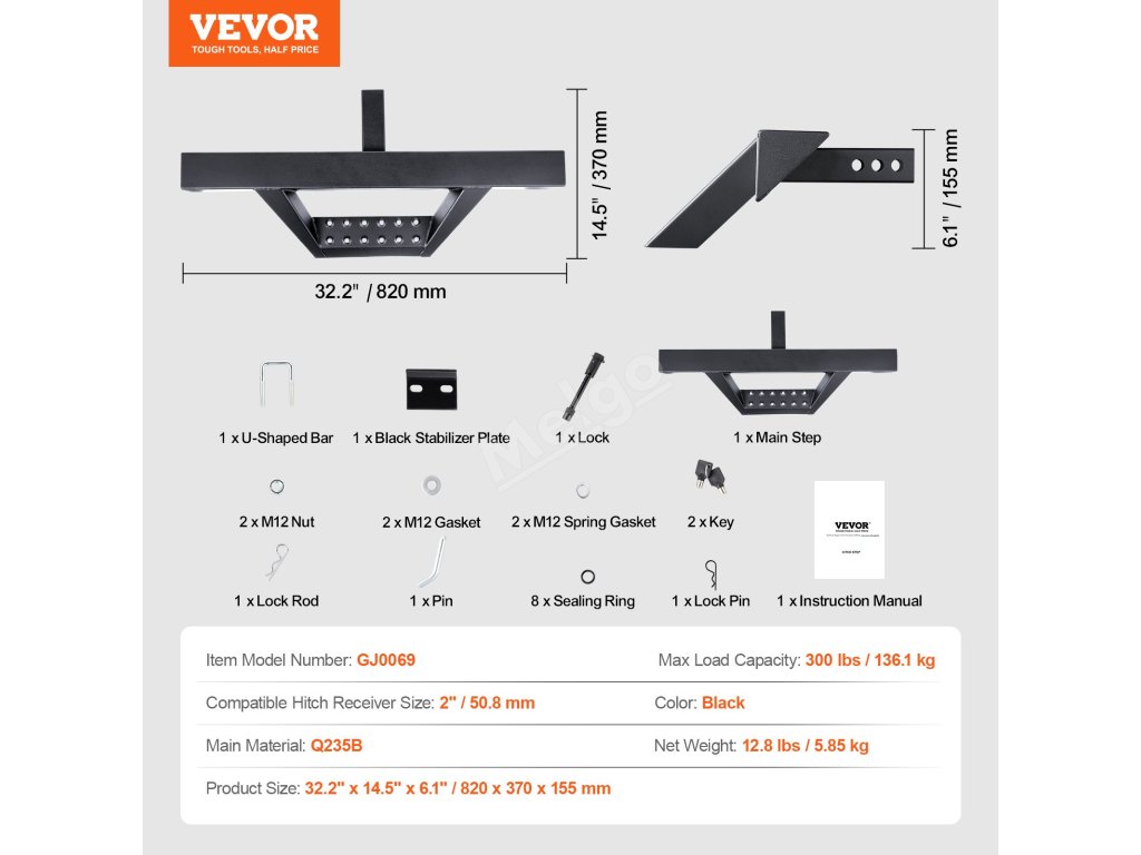 Nášlapný stupínek pro 2 inch přijímač, 300 LBS, ocelový, univerzální