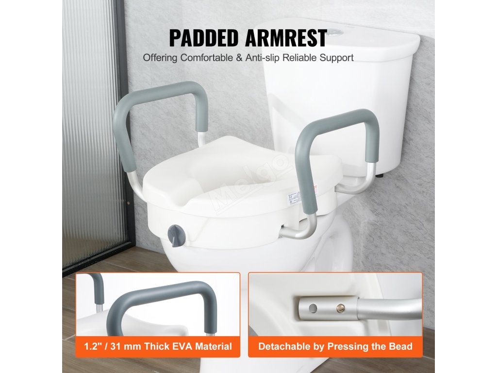 Zvýšené záchodové prkénko, vyrobené především z hliníku a vysokopevnostního plastu, je odolné a unese až 350 kg, takže ho mohou bez obav používat osoby s různými tvary těla a hmotností. Navíc se snadno čistí po celém obvodu.