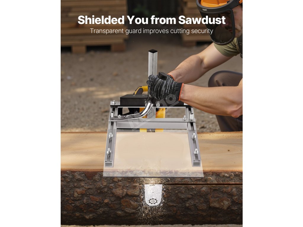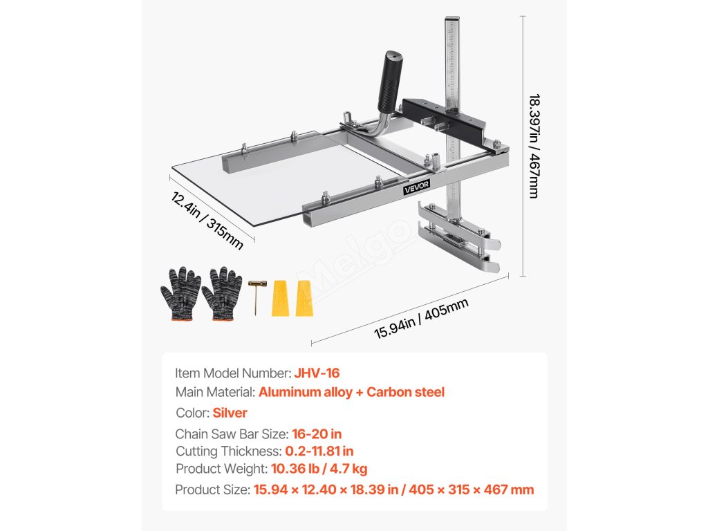 Řezačka je kompatibilní s vodítky řetězové pily od 16 do 20 palců s nastavením tloušťky od 0,2 do 11,81 palce pro různé druhy dřeva a potřeby řezání