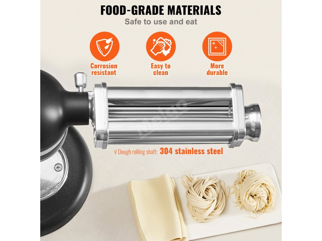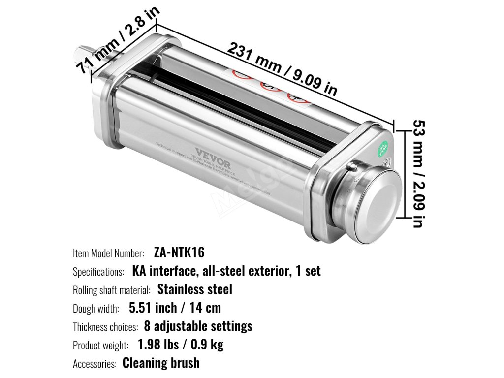 Nástavec na těstoviny se snadno používá a čistí. Stačí jej vložit do stojanového mixéru a otáčením knoflíku snadno připravit těstoviny. Tělo lze otřít suchým hadříkem, zatímco váleček lze omýt vodou a poté otřít do sucha měkkým hadříkem.