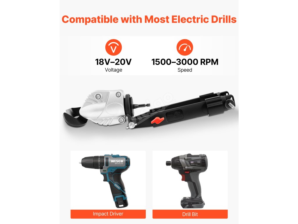 Tento vrtací nůžkový adaptér řeže více než jen kovy - nerezovou a pozinkovanou ocel, hliník, plast, lepenku, gumu a kůži. Poskytuje čisté a efektivní výsledky. Není určen k řezání trubek, asfaltových šindelů nebo vlnitého plechu.