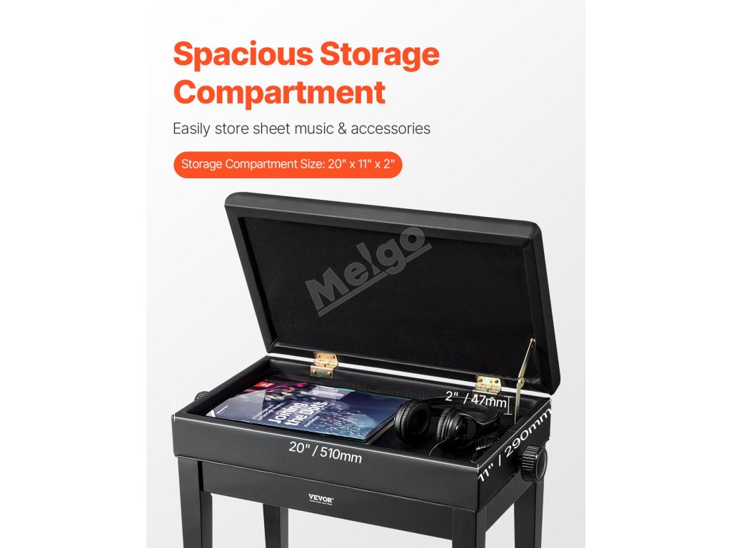 nastavitelná klavírní lavice s úložným prostorem 22" x 13" x 19,3"