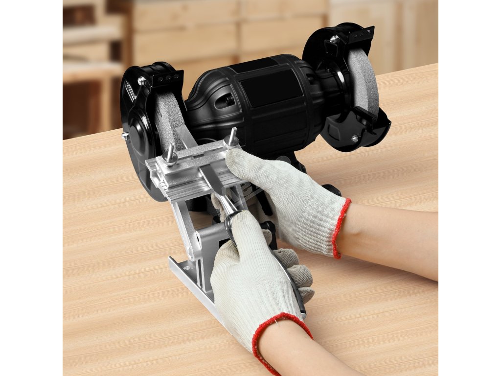 Naše ostřička nástrojů je kompatibilní se stolními bruskami, bruskami, úhlovými bruskami a brusnými kameny. Zajišťuje pevné a stabilní upnutí ostří a poskytuje přesné broušení, které zabraňuje deformaci ostří a zajišťuje jeho trvalou ostrost a výkon.