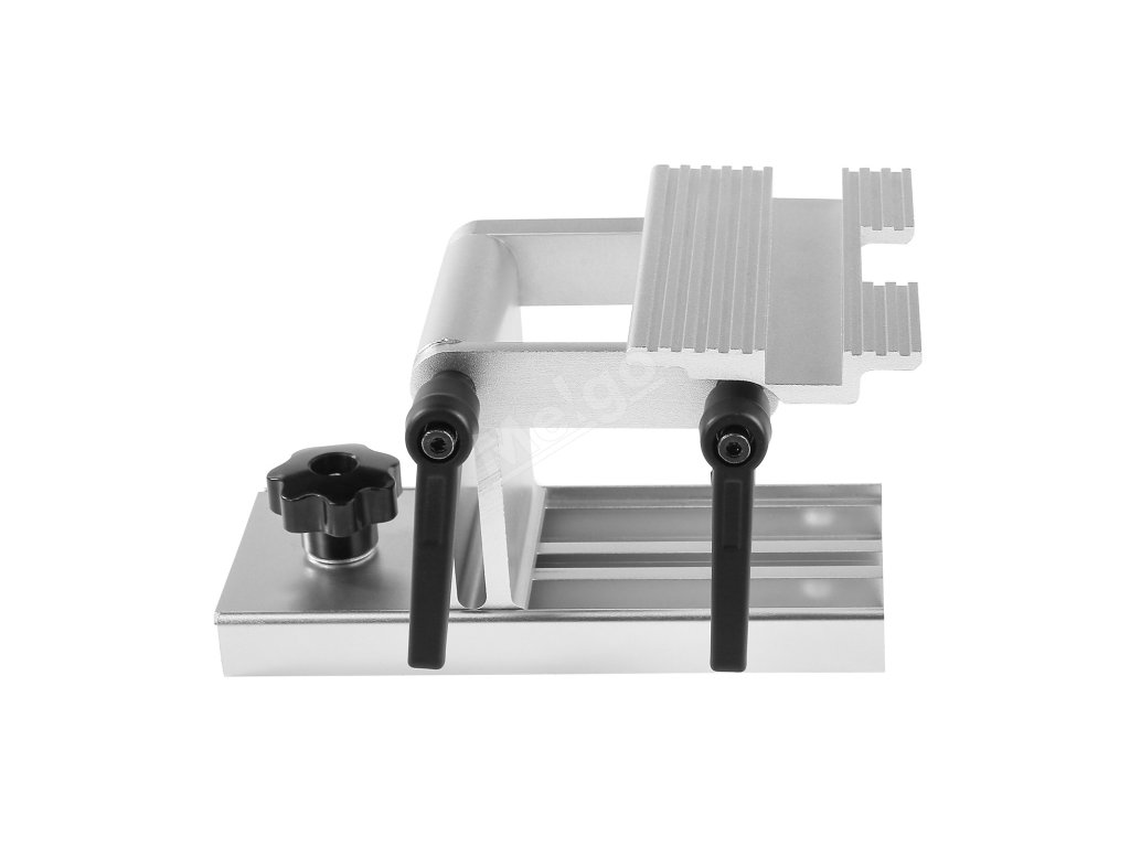 Tento stolní brousicí přípravek umožňuje plynulý pohyb vpřed a vzad. Po nastavení jej jednoduše zajistíte nastavovacím knoflíkem. Je také vybaven funkcí nastavení výšky nahoru a dolů, což vám poskytuje větší kontrolu a flexibilitu.