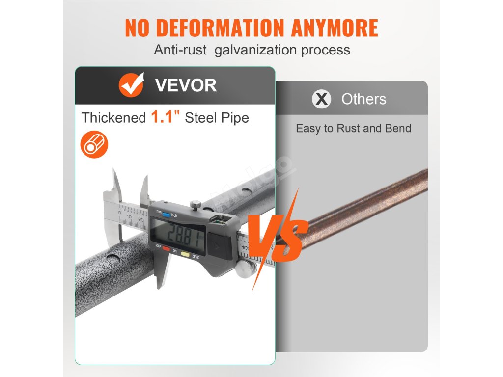 Trubka z vysokopevnostní uhlíkové oceli má silnou strukturu, která zajišťuje, že naše zátěžová tyč s ráčnou zůstává odolná proti deformaci i po delším používání. Práškové lakování zajišťuje odolnost proti dešťové erozi a korozi a zároveň omezuje poškrábání pro dlouhotrvající krásu.