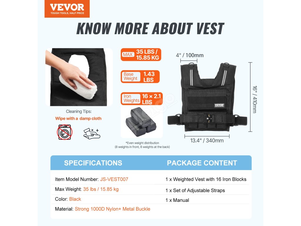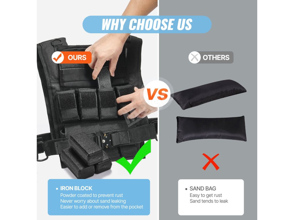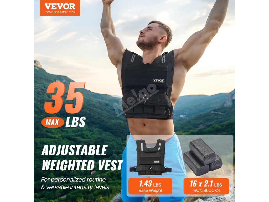 Tato nastavitelná zátěžová vesta začíná na 1,43 kg a lze ji zvýšit až na 35 kg pomocí šestnácti železných bloků o hmotnosti 2,1 kg, které jsou součástí balení. Díky praktickým kapsám můžete snadno přidávat nebo odebírat závaží, což vám umožní přizpůsobit intenzitu tréninku.