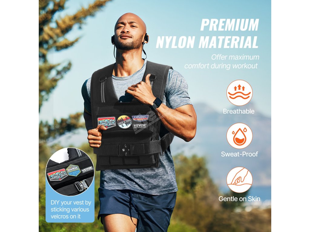 Tato zátěžová vesta je vyrobena z nylonu 1000D a nabízí prodyšnost, odolnost proti potu a měkký pocit na kůži pro pohodlný trénink.