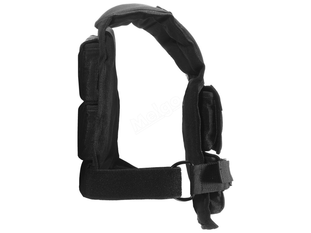Vesta s tělesnou hmotností umožňuje přidat k ní popruhy na suchý zip. Vestu si můžete přizpůsobit pomocí různých příchytek na suchý zip.