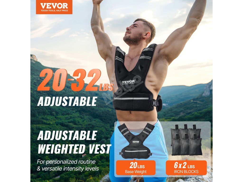 Nastavitelná závažová vesta 20-32lb s 6 závažími a reflexním pruhem