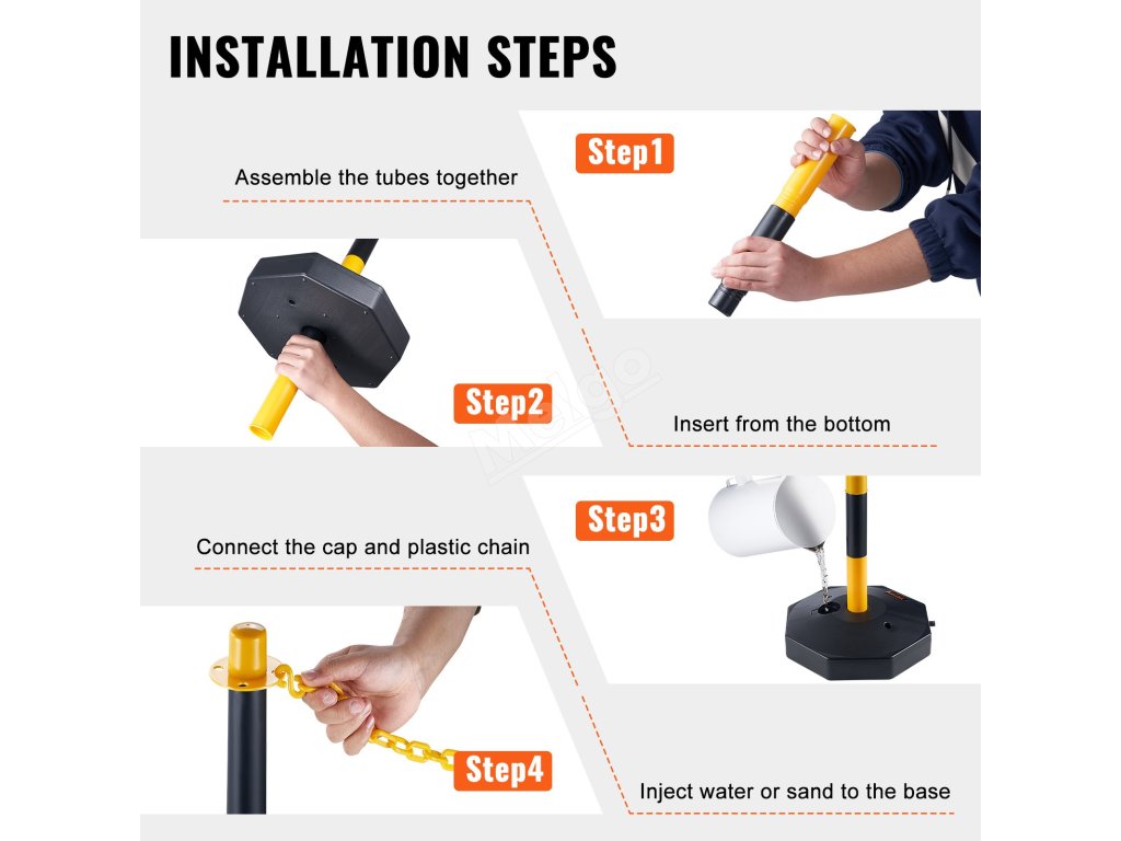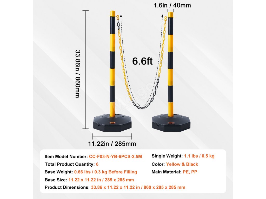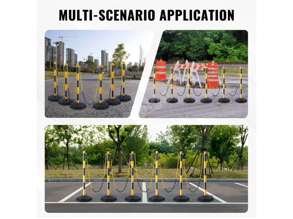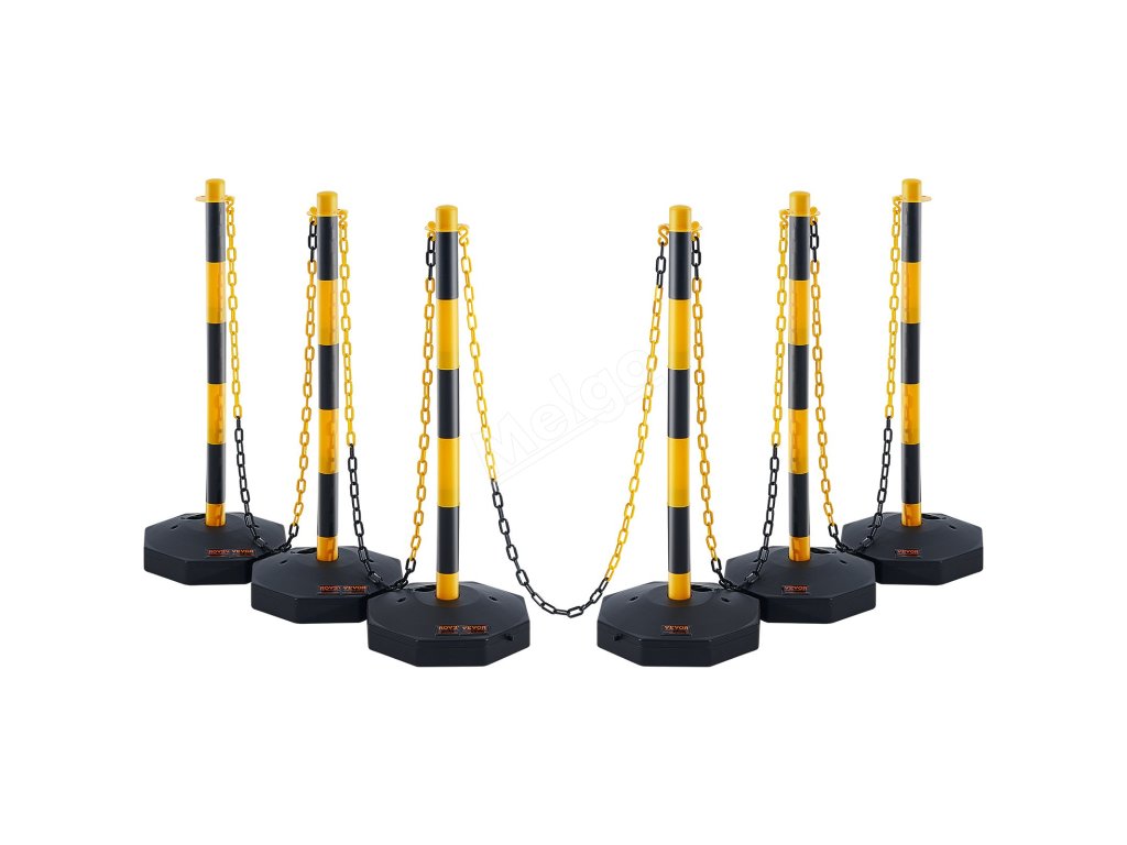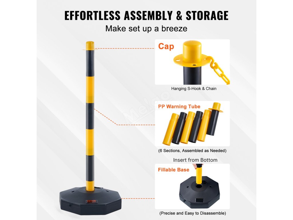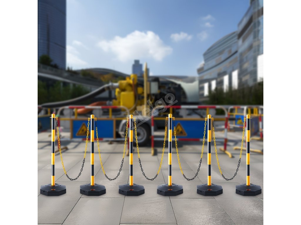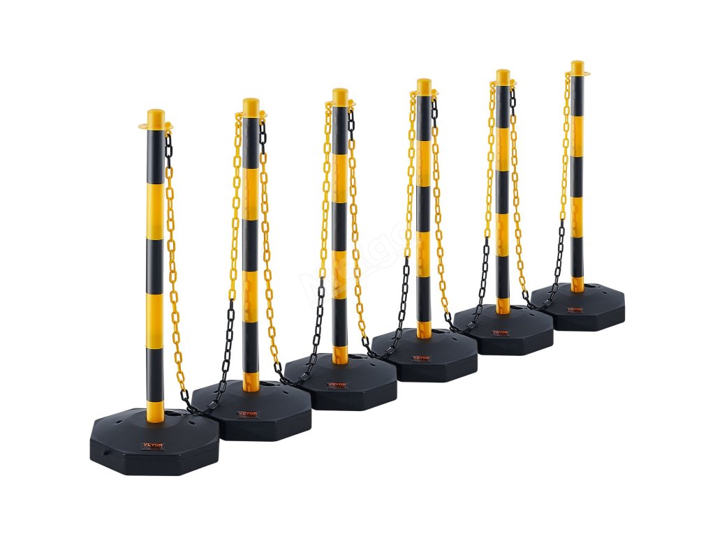 Naše sloupky pro vymezení provozu mají pevnou základnu o rozměrech 11,22 x 11,22 palce, která je navržena tak, aby byla stabilní a odolala zkoušce času. Hmotnost sloupků si můžete přizpůsobit díky možnosti naplnit je vodou (8,8 kg) nebo pískem (12 kg).