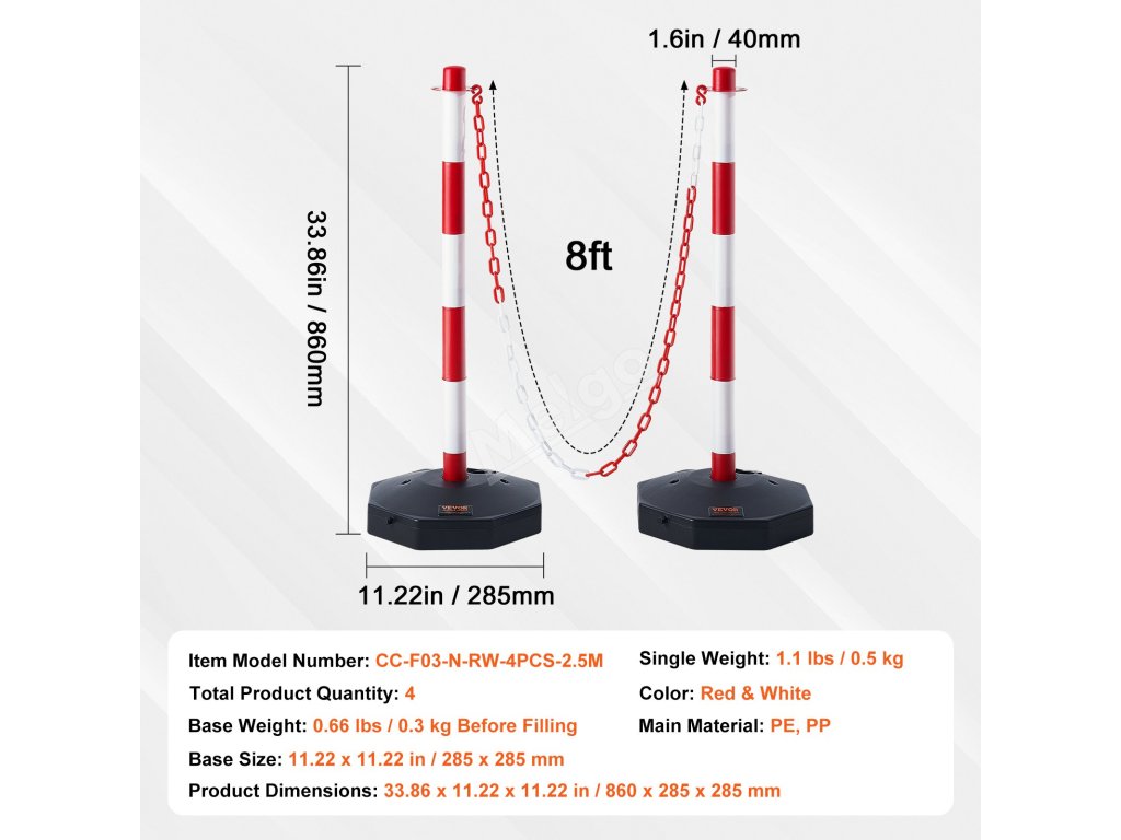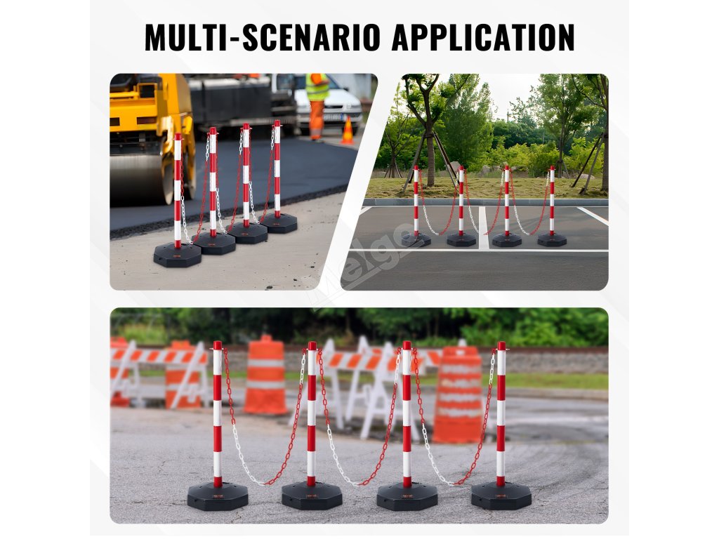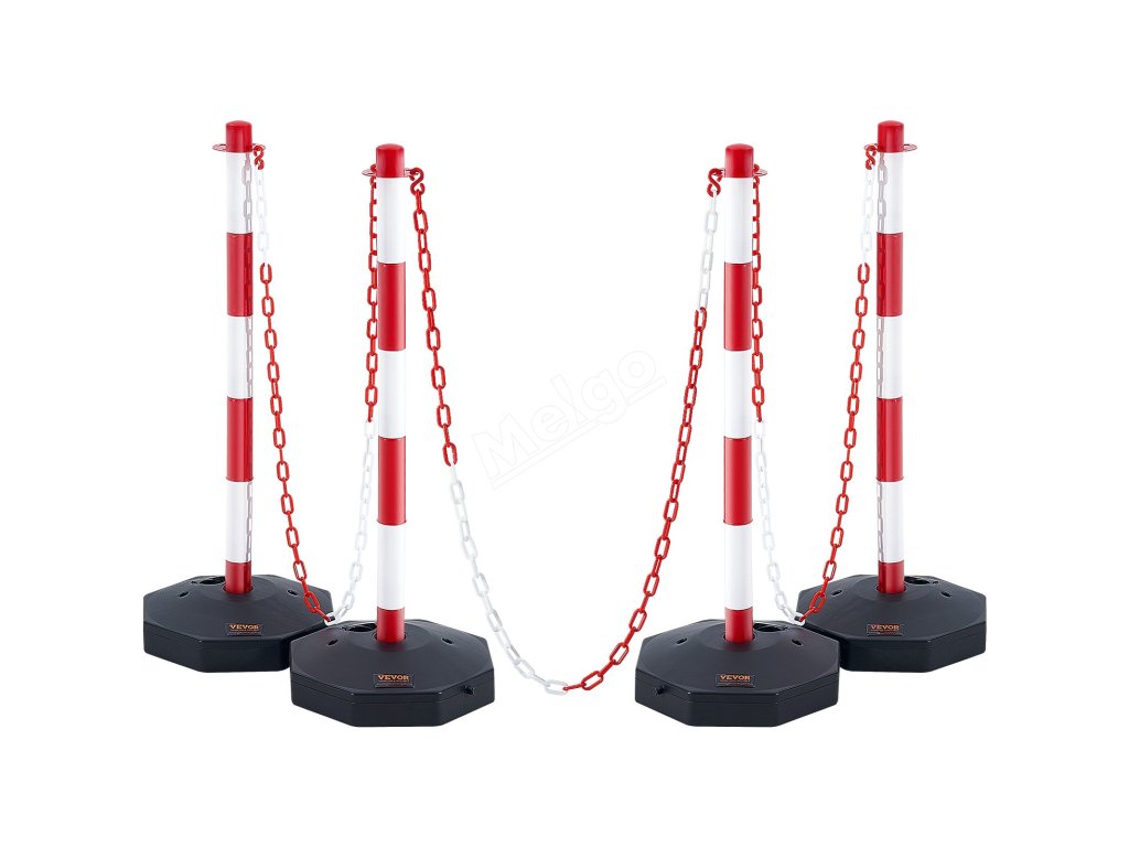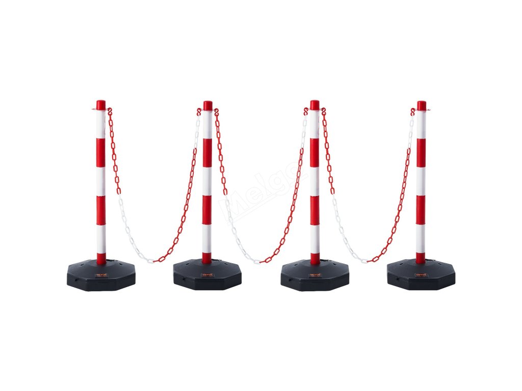 Nastavitelné sloupky 4 ks, řetěz 2,44 m, plnitelná báze, červeno-bílé