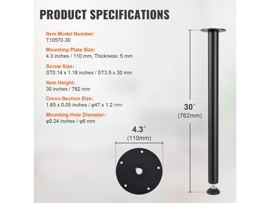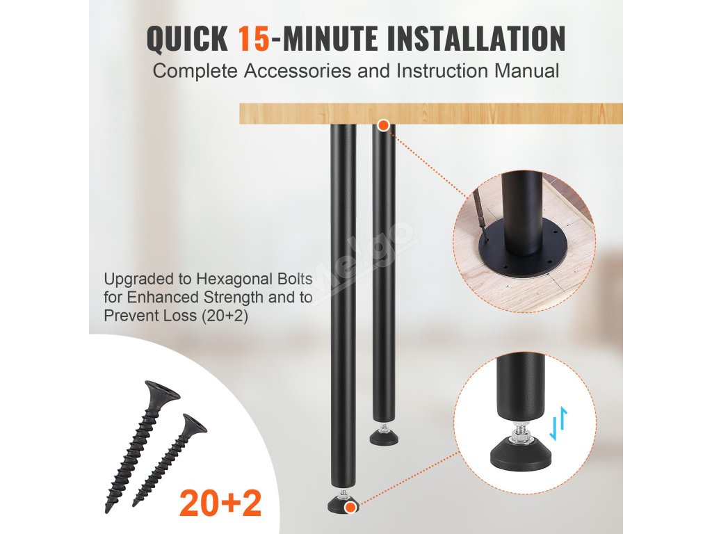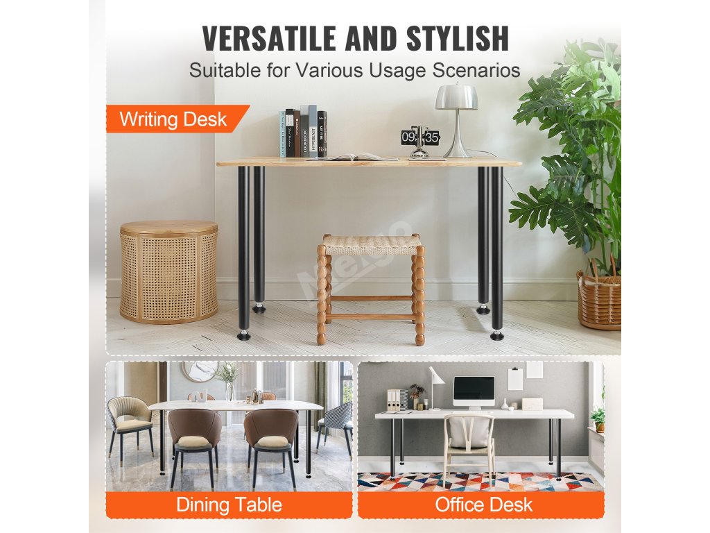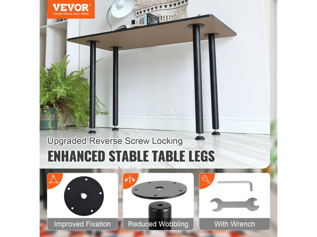 Naše univerzální stolové nohy mohou podpírat různé velikosti stolových desek nebo nábytku, například pohovky. Jsou vyrobeny ze silné masivní oceli a díky svařovaným montážním deskám nabízejí vysokou nosnost a odolnost. Vyberte si stolové nohy VEVOR pro praktický a spolehlivý nábytek.