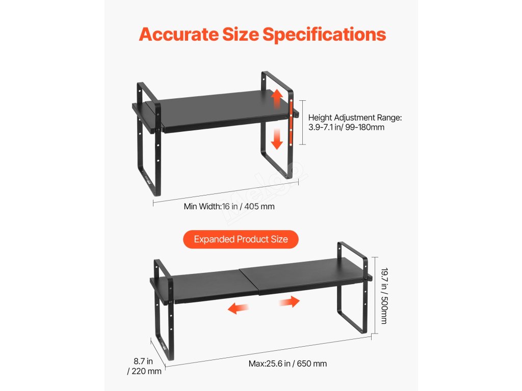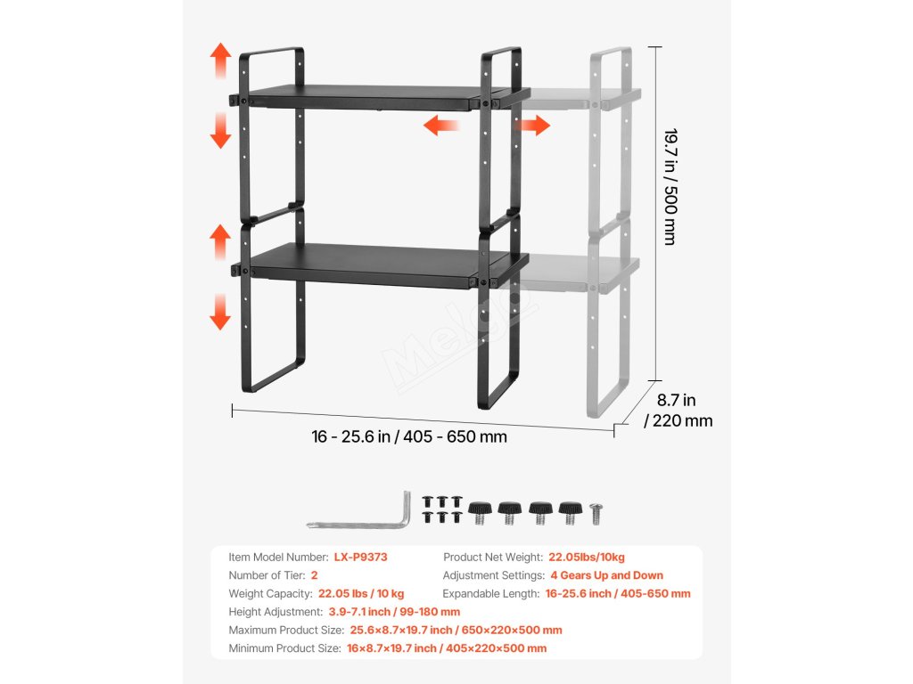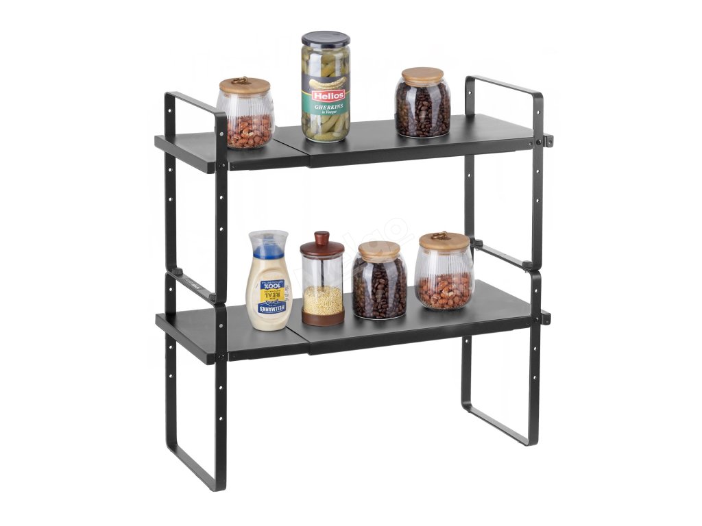Nastavitelný 2-podlažní organizér do skříňky, roztahovací, černý