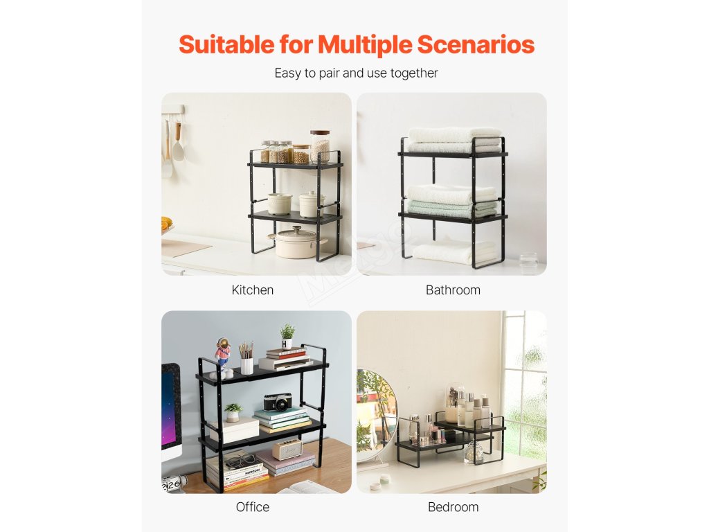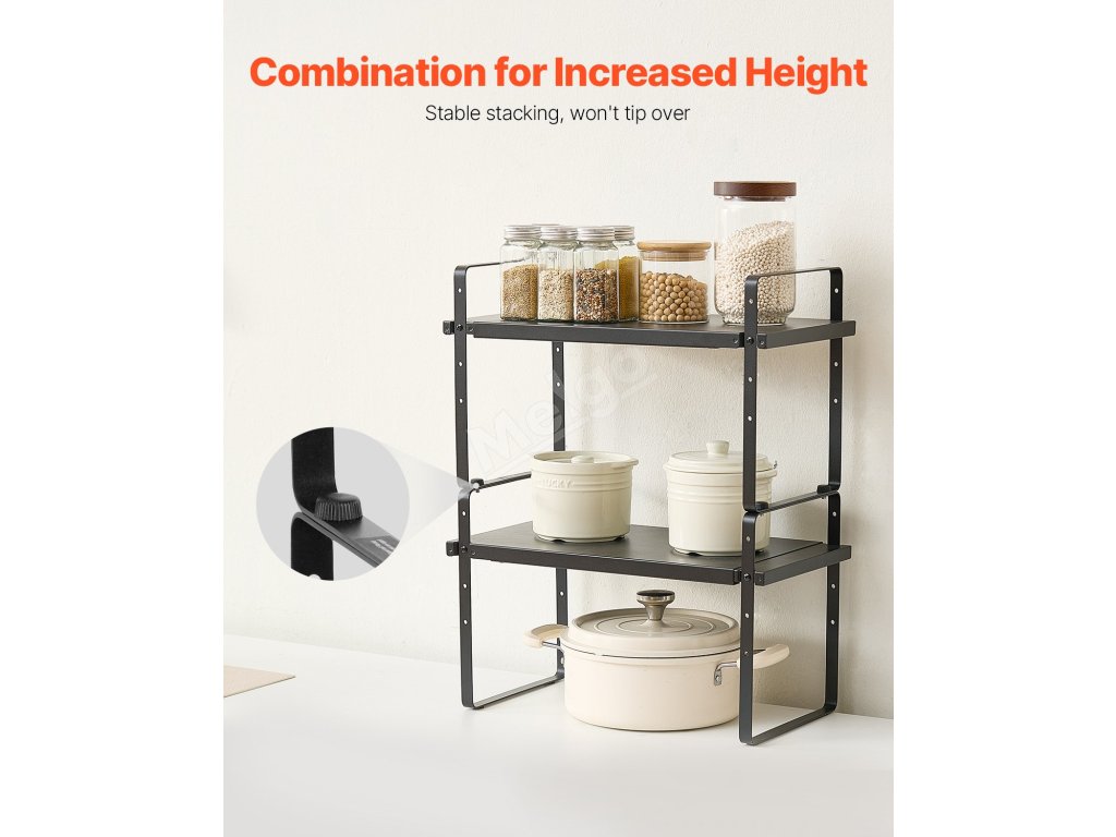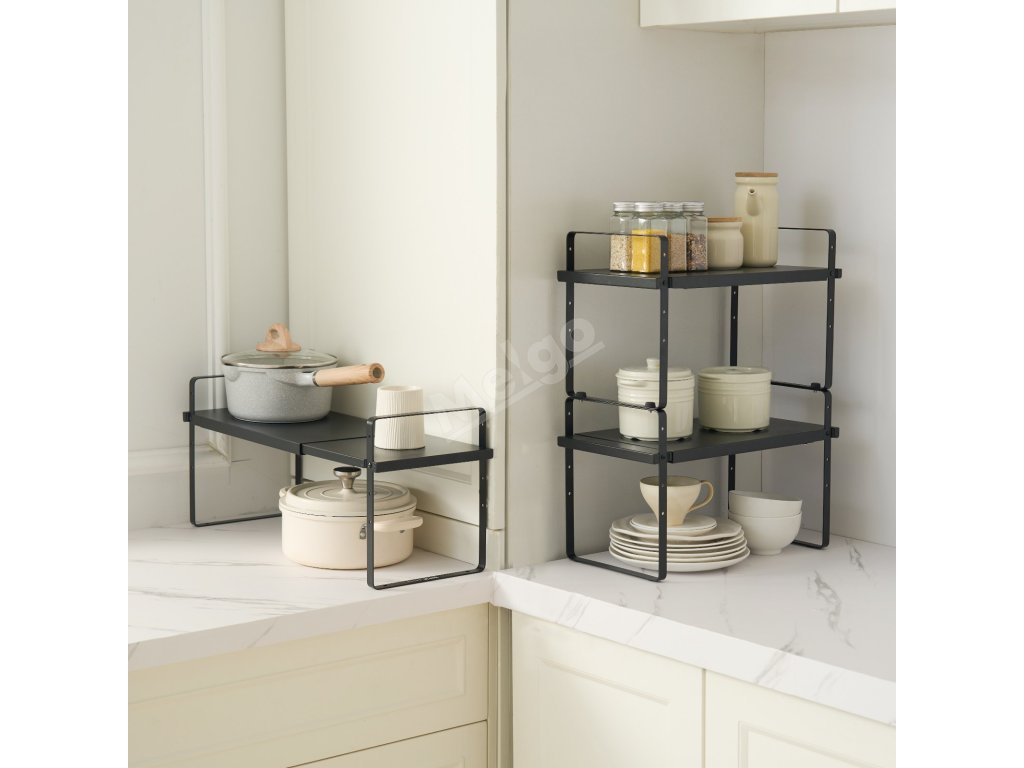 Tento regál na organizovanie skriniek podporuje rozšírenie šírky a nastavenie výšky a možno ho flexibilne stohovať. Môže sa používať samostatne alebo sa môže stohovať vo viacerých vrstvách. Táto konštrukcia výrazne zväčšuje úložný priestor a zároveň udržiava vašu kuchyňu prehľadnú a organizovanú.