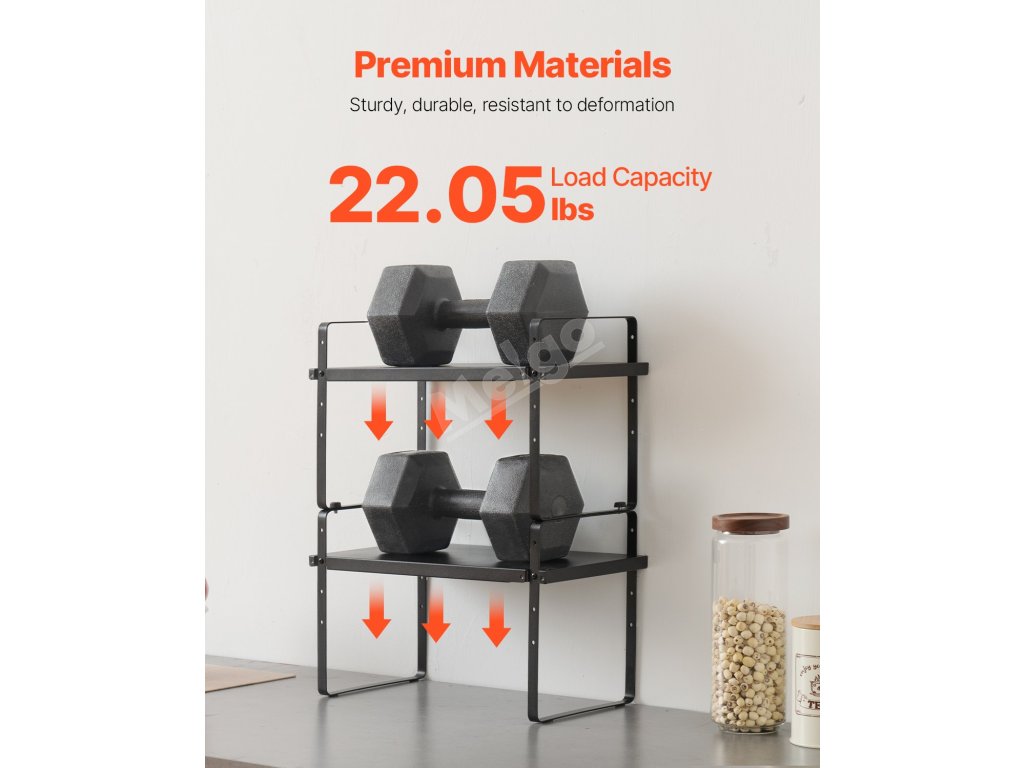 Dvojúrovňová konštrukcia výrazne zvyšuje úložnú kapacitu, čo umožňuje prehľadné a organizované riešenie skladovania a zároveň efektívne využíva vertikálny priestor. Zaručuje viac priestoru pre nádoby s korením, kuchynské náradie a iné predmety, čím sa eliminuje neporiadok a všetko je ľahko dostupné.