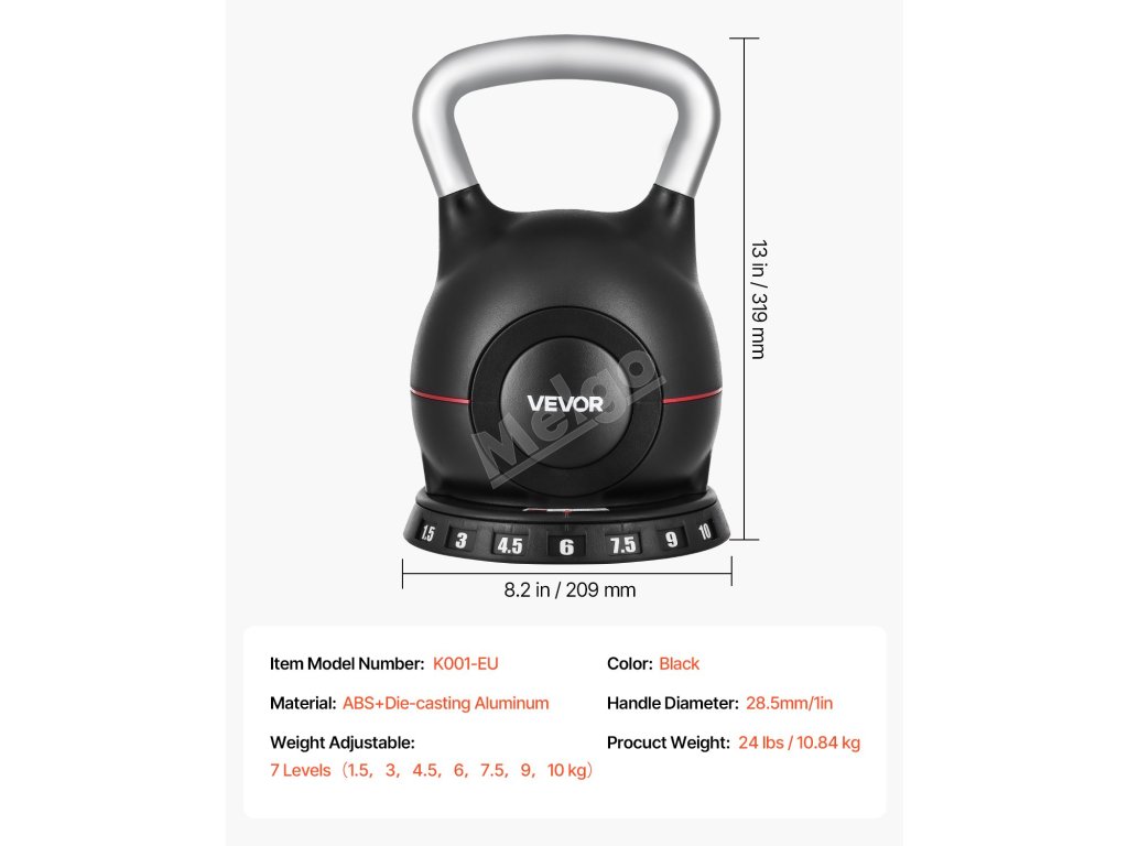 Nastavitelný kettlebell 1.5–10 kg, 7 úrovní, hliník/abs, pro trénink