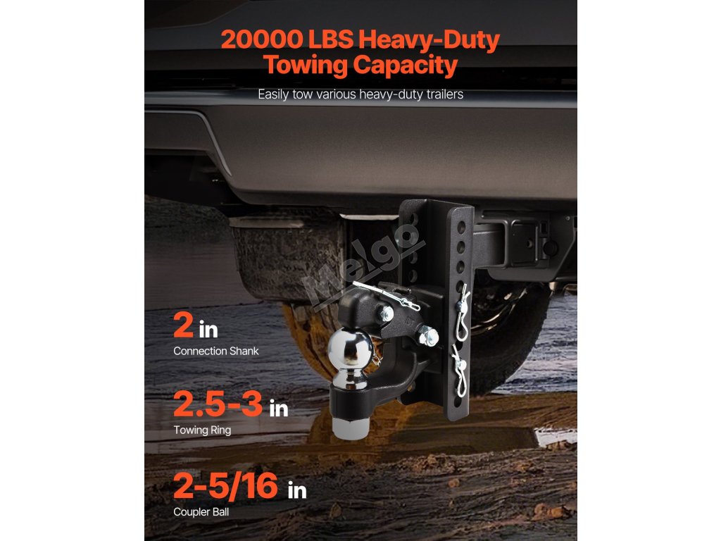 Nastavitelný pintle hák 20000 lbs, pro 2-inch, 2-5/16-inch koule