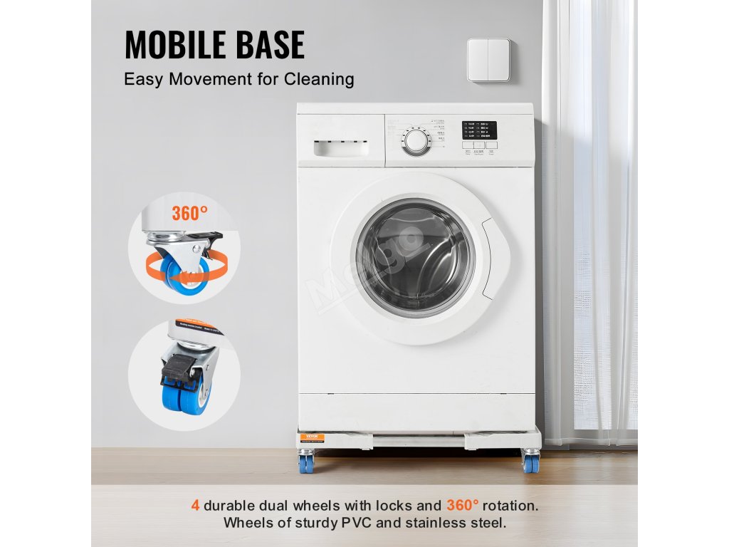 S tímto přenosným stojanem lze pračku snadno přemístit a zabezpečit, takže čištění je hračka a žádný kout nezůstane nedotčený, když spotřebič přemístíte.