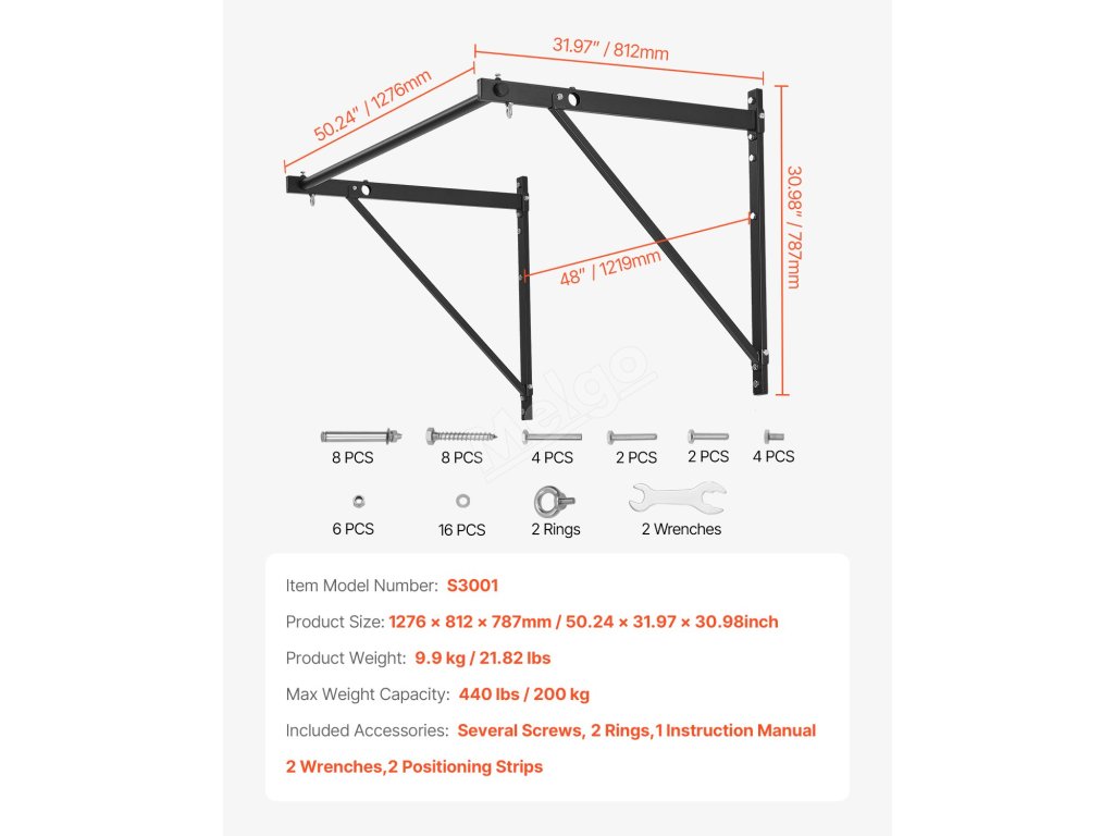 Nastěnná hrazda na přítahy šířka 50 in, hloubka 22"/30", nosnost 440 lbs