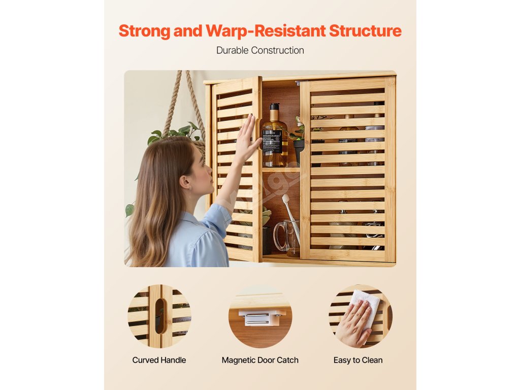 Naše závěsná koupelnová skříňka má pevný a odolný rám s hladkým magnetickým uzávěrem. Pohodlné úchyty a hladké hrany usnadňují otevírání a zabraňují nárazům. Police o tloušťce 0,6 palce zajišťují silnou nosnost a zůstávají dlouhodobě robustní a atraktivní.