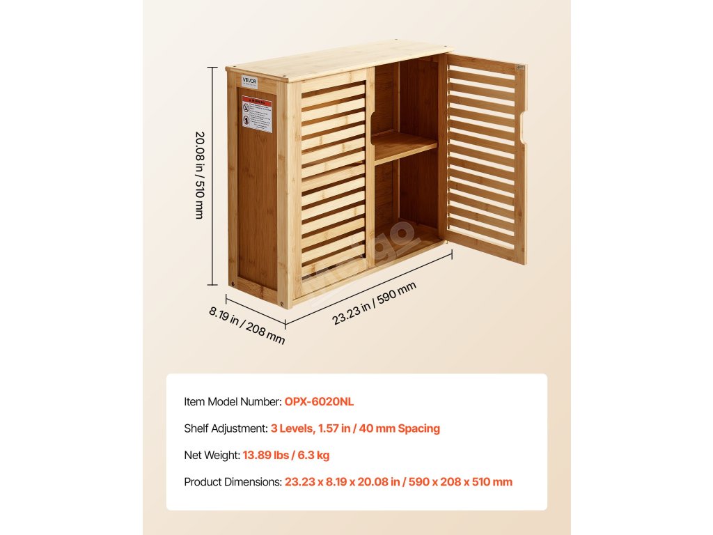 Tato koupelnová nástěnná skříňka má prvotřídní konstrukci, je robustní, odolná a atraktivní. Její prostorný interiér s tříúrovňovou nastavitelnou policí maximalizuje vertikální úložný prostor. Naše koupelnová nástěnná skříňka splňuje potřeby pro uložení různých toaletních potřeb a různých předmětů.