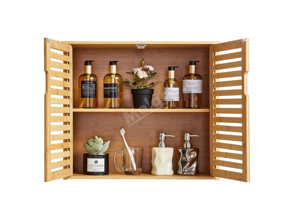 Nástěnná koupelnová skříňka nad wc, 2 dvířka, police se 3 úrovněmi