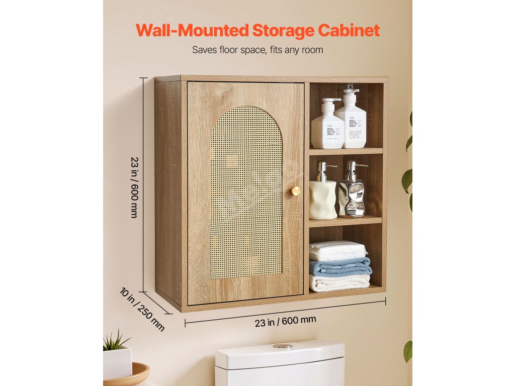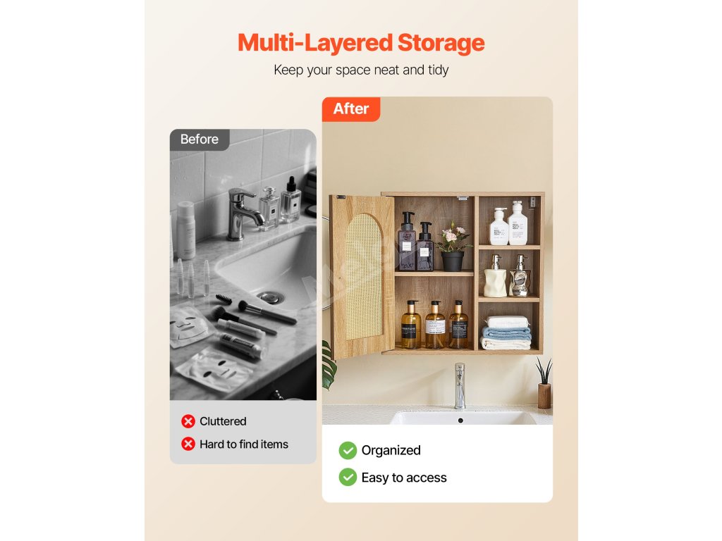 Tato multifunkční koupelnová nástěnná skříňka se snadno začlení do koupelen, kuchyní, ložnic, obývacích pokojů, chodeb a dalších obytných prostor. Flexibilně se přizpůsobí k ukládání toaletních potřeb, kuchyňských skříněk, uspořádání nepořádku v ložnici nebo k dekoraci stěn obývacího pokoje.