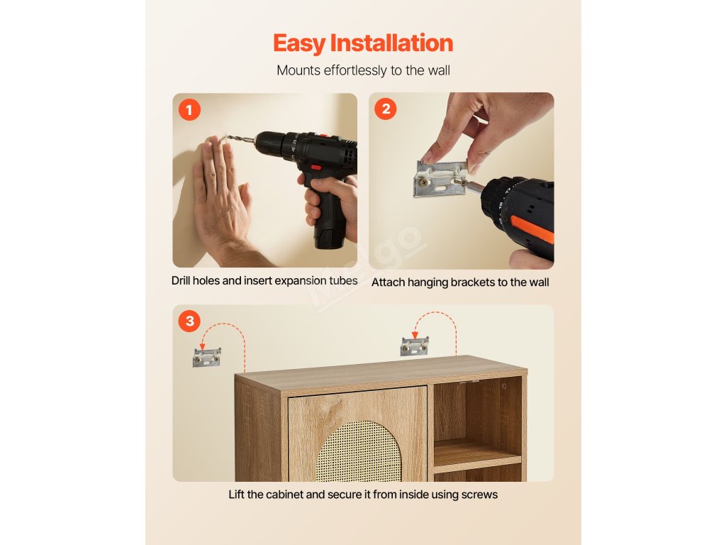 Tato nástěnná koupelnová skříňka má bezpečnou a stabilní montážní konstrukci, je dodávána s podrobným návodem k použití a kompletní sadou nářadí. Pro snadnou instalaci nejsou nutné žádné složité operace. Skříňku může na stěnu rychle namontovat jak začátečník, tak i neprofesionál.