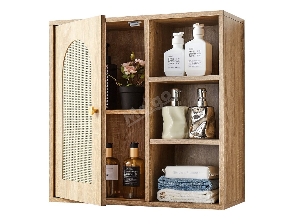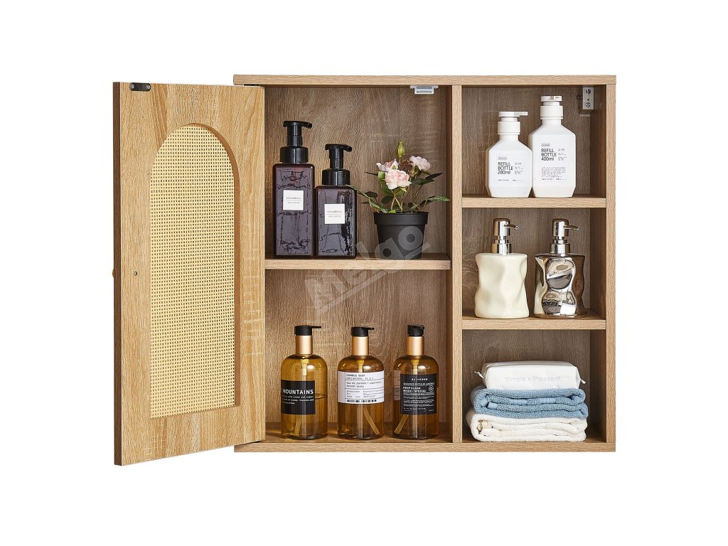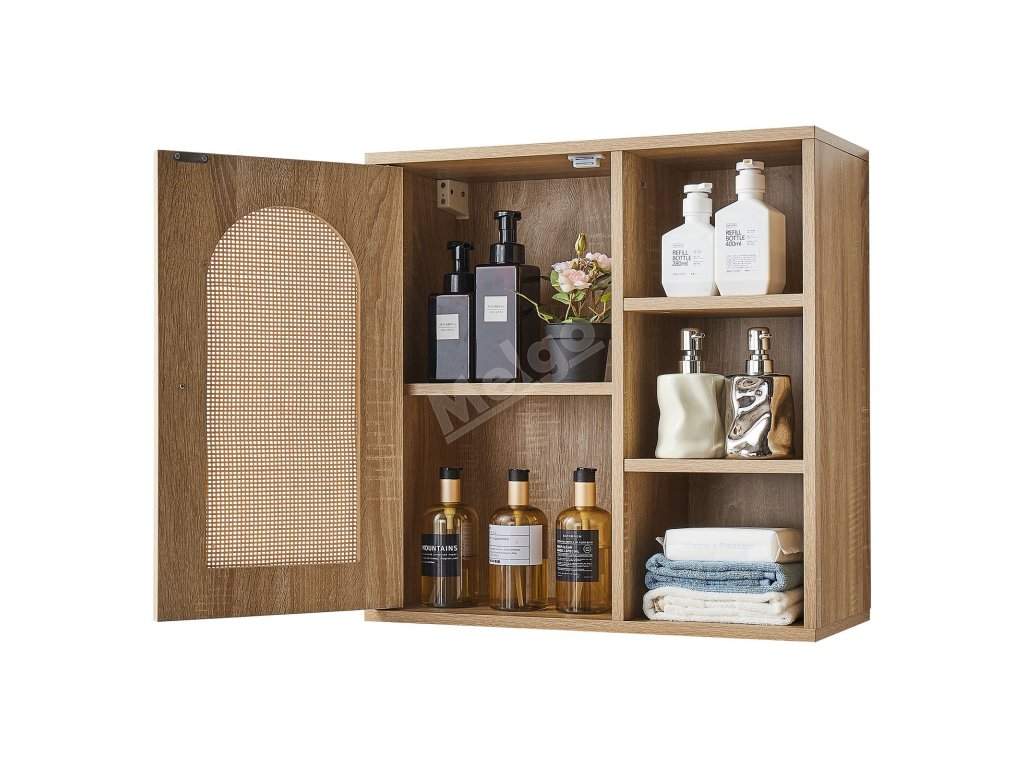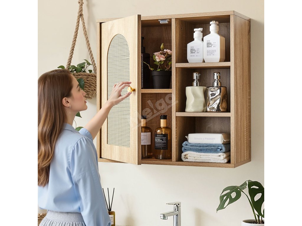 Tato koupelnová nástěnná skříňka je vyrobena z prvotřídní dřevotřísky, je robustní, odolná a atraktivní. Její prostorný interiér s pětiúrovňovou nastavitelnou policí maximalizuje vertikální úložný prostor. Naše koupelnová nástěnná skříňka splňuje požadavky na uložení různých toaletních potřeb a různých předmětů.