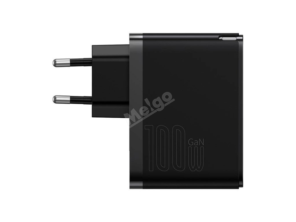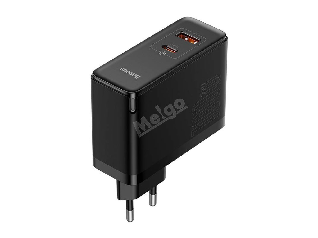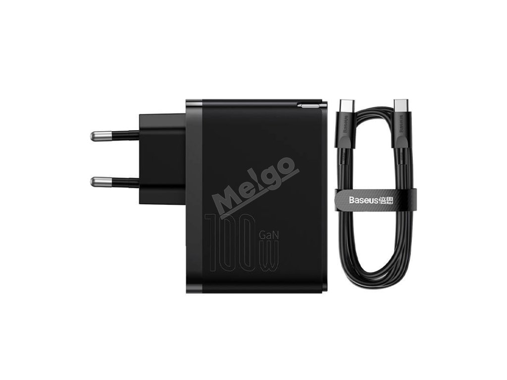 Nástěnná nabíječka Baseus GaN USB-C + USB, 100 W + 1 m kabel (černá)