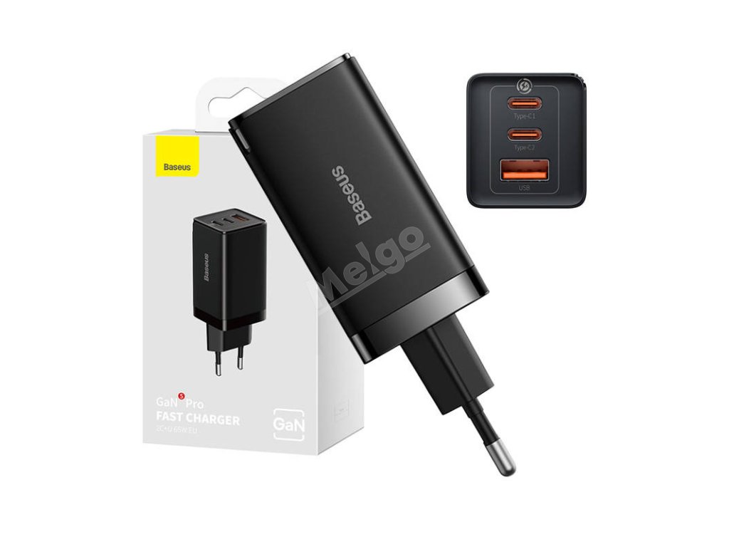 Baseus GaN5 Pro 2xUSB-C + USB síťová nabíječka, 65W (černá)
